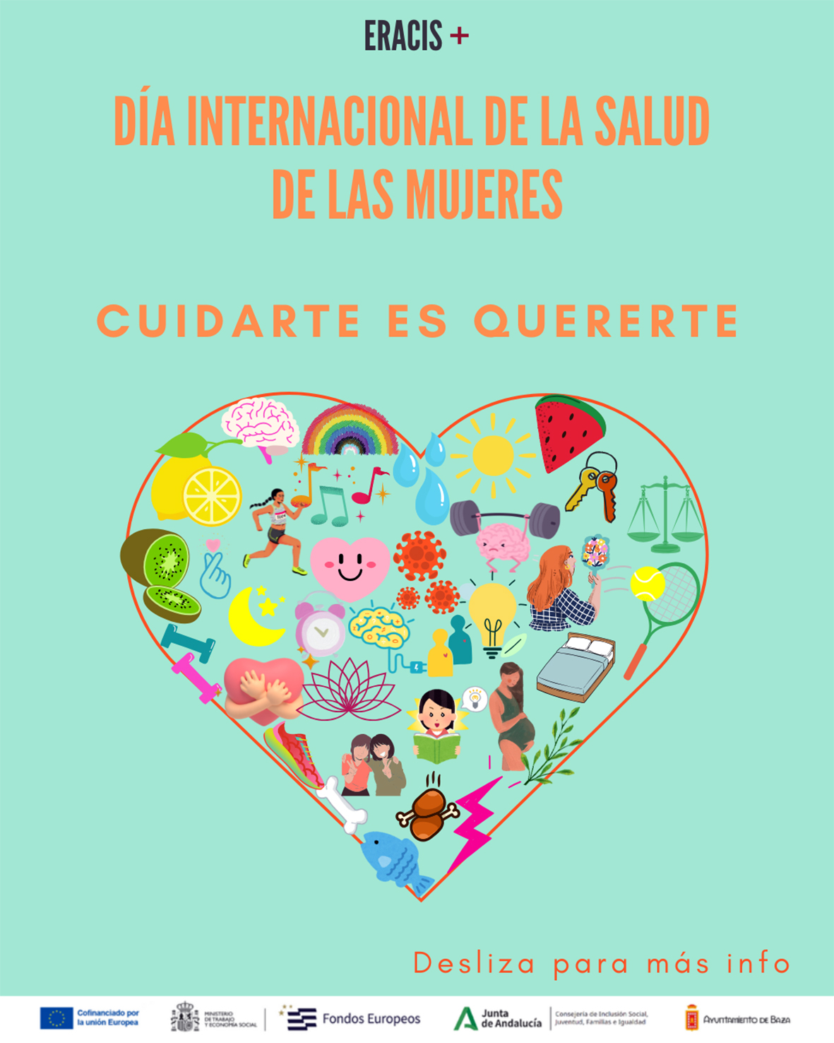 Desde el Programa ERACIS+, cofinanciado por el Fondo Social Europeo Plus y la Consejería de Inclusión Social, Juventud, Familias e Igualdad de la Junta de Andalucía, cuidamos la salud integral de las mujeres.