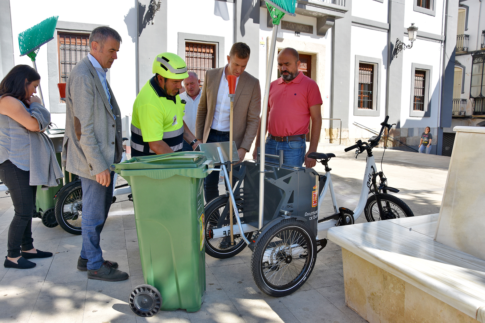 Como primera medida sobre el terreno, el alcalde, Pedro J. Ramos, el concejal de Mantenimiento, Rafael Azor, y el responsable de Emuviba, José Antonio Valdivieso, acompañados por el coordinador de Valoriza en la ciudad, Sergio Yeste, presentaban recientemente los tres nuevos triciclos eléctricos que se incorporan al servicio de limpieza viaria urbana. Con un sistema de desplazamiento asistido al pedaleo, en el que se pueden adquirir distintas velocidades y potencias, y una batería de gran capacidad que permite circular durante varias decenas de kilómetros, estos nuevos vehículos permitirán a los operarios que los utilicen recorrer más espacio, desplazarse con mayor rapidez y agilidad, deambular por calles estrechas, entre otras ventajas. Los triciclos llevan incorporado un cubo para la recogida de los residuos, las herramientas propias e incluso se les podría añadir en breve algún dispositivo de hidrolimpieza que les facilite la eliminación de otros restos y manchas en las calles.