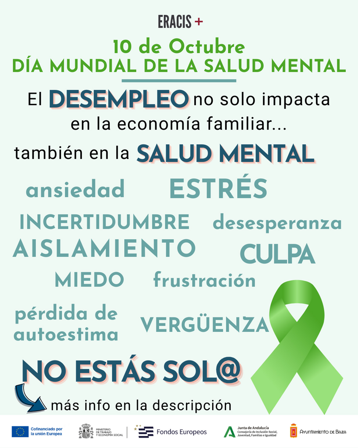 Con motivo del Día Mundial de la Salud Mental, el equipo ERACIS+, cofinanciado por el Fondo Social Europeo Plus y la Consejería de Inclusión Social, Juventud, Familias e Igualdad de la Junta de Andalucía, pone en marcha un servicio gratuito dirigido a la gestión emocional de las personas que atraviesan situaciones de desempleo.