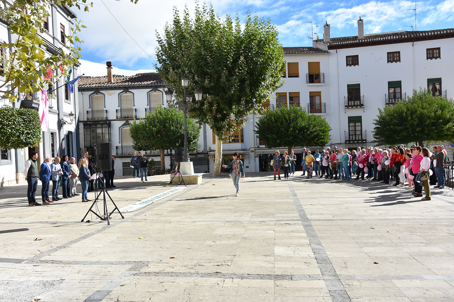 La ciudad de Baza ha vuelto a manifestar su respaldo a la lucha contra el cáncer de mama. Dos jornadas después del Día Mundial Contra el Cáncer de Mama, establecido el 19 de octubre, la Plaza Mayor bastetana ha acogido el acto institucional con motivo de esta reivindicación. Organizado por la Junta Local de la Asociación Española Contra el Cáncer, la convocatoria ha contado con la presencia del alcalde de Baza, Pedro J. Ramos, de varios miembros de la corporación municipal, fuerzas de seguridad, diversas entidades sociales del municipio y varias decenas de personas, la mayoría de las cuales habían participado esa misma mañana en la Ruta Saludable previa a esta celebración.