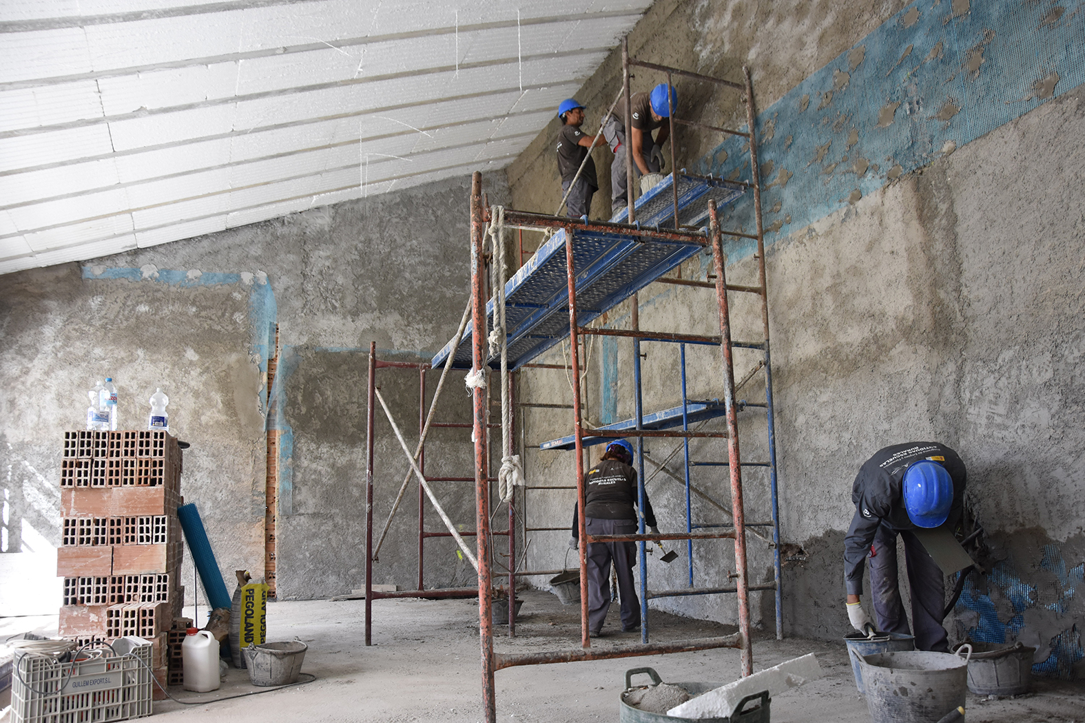 Menudo cambio se está empezando a ver en el edificio abandonado durante tantos años de la antigua escuela rural del barrio Perchel de nuestra ciudad. Un espacio situado junto a la carretera de acceso que forma parte de la imagen de esta zona pero que había caído en el olvido. Están trabajando en ella, dentro de sus prácticas formativas, los quince alumnos del Programa de Empleo y Formación “Antiguas Escuelas Rurales” que hasta el próximo mes de junio estará en marcha en Baza. Alumnos-trabajadores que se forman en materias relacionadas con la albañilería y la fontanería y que llevan a cabo sobre el terreno las indicaciones de sus monitores.