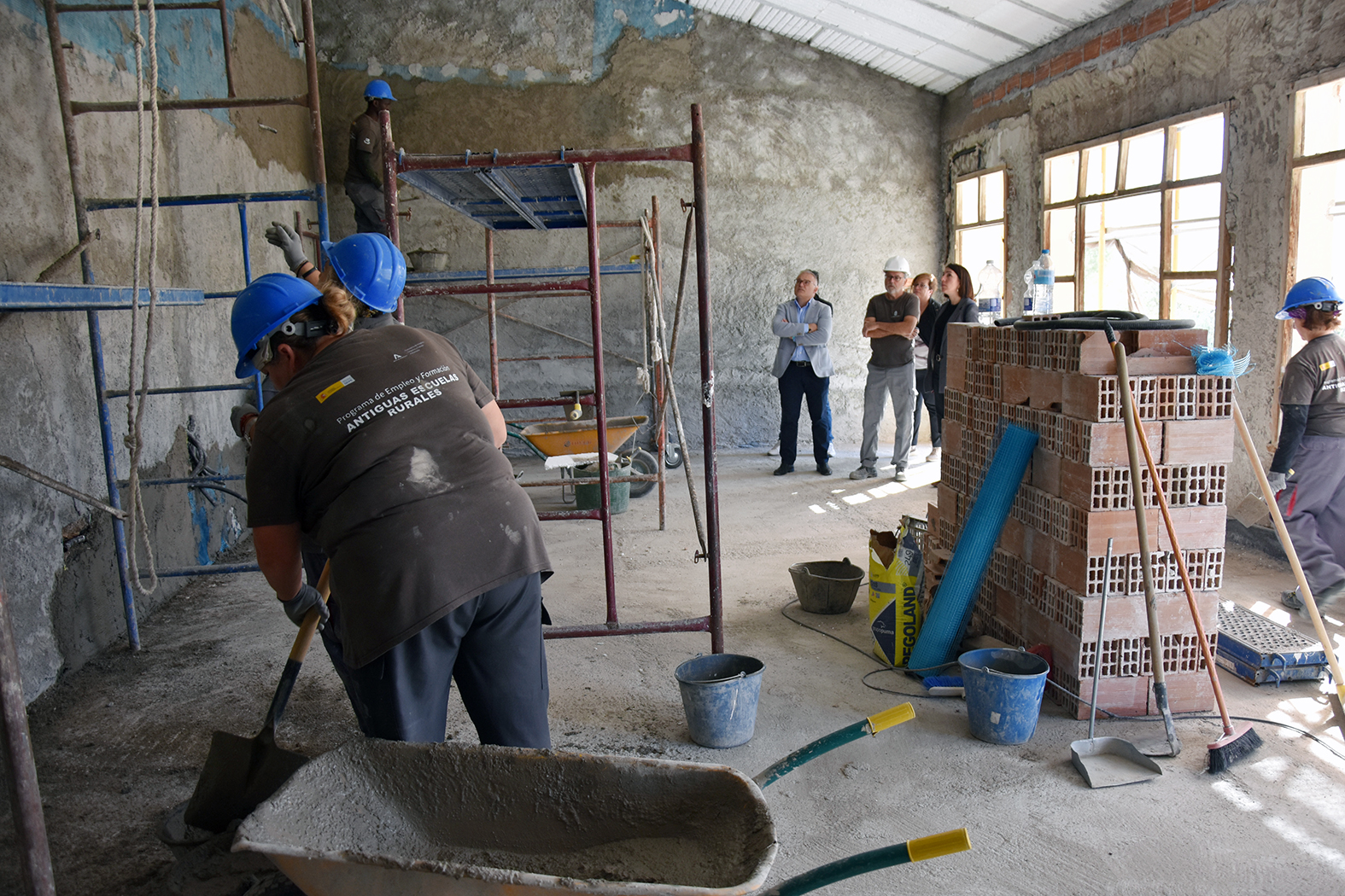 Recientemente han recibido la visita del alcalde del municipio, Pedro J. Ramos, acompañado por la concejala de Urbanismo, Mª Carmen López, que han comprobado el estado de la intervención y han dialogado con los alumnos de este Programa de Empleo y Formación. La intención municipal es que esta antigua escuela rural, una vez rehabilitada junto con las dependencias anexas, se pongan a disposición de los vecinos como espacio comunitario.