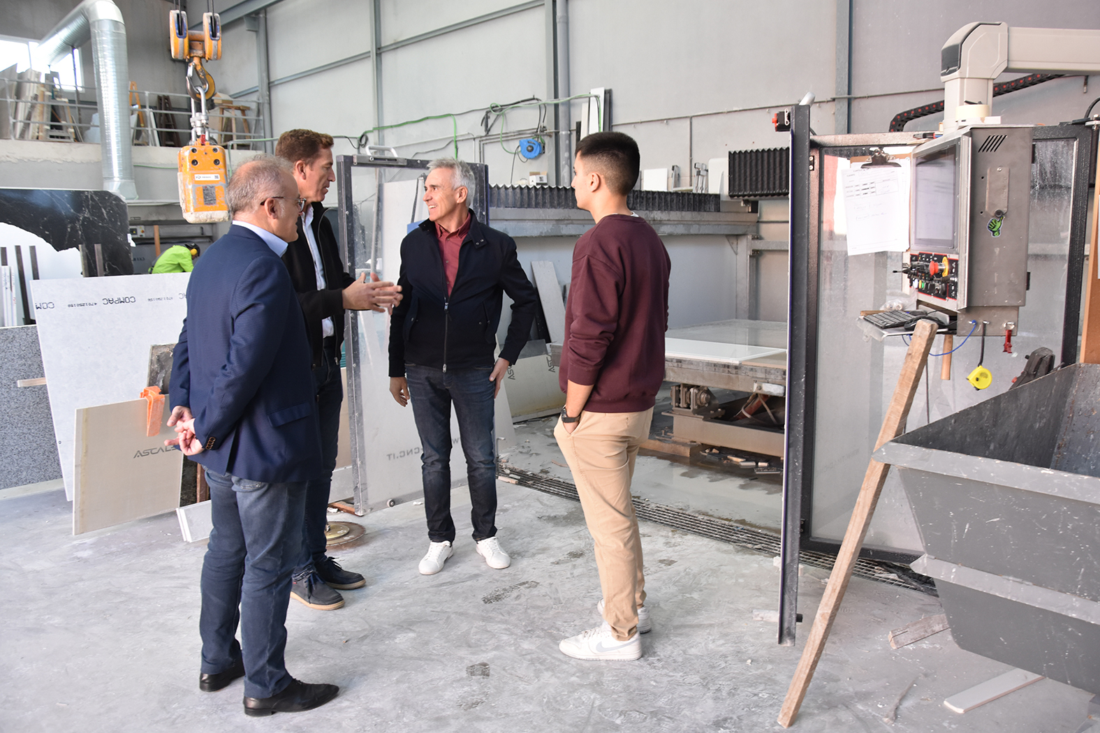 Continuando con las visitas que el alcalde de Baza, Pedro J. Ramos, y el concejal de Economía y Empleo, Ramón López, están realizando por distintas empresas de la ciudad para conocer su situación, sus expectativas, sus necesidades y ofrecerles el respaldo municipal, a comienzos de este mes eran recibidos en Mármoles Reigón, en la calle Neptuno del polígono industrial La Noria.