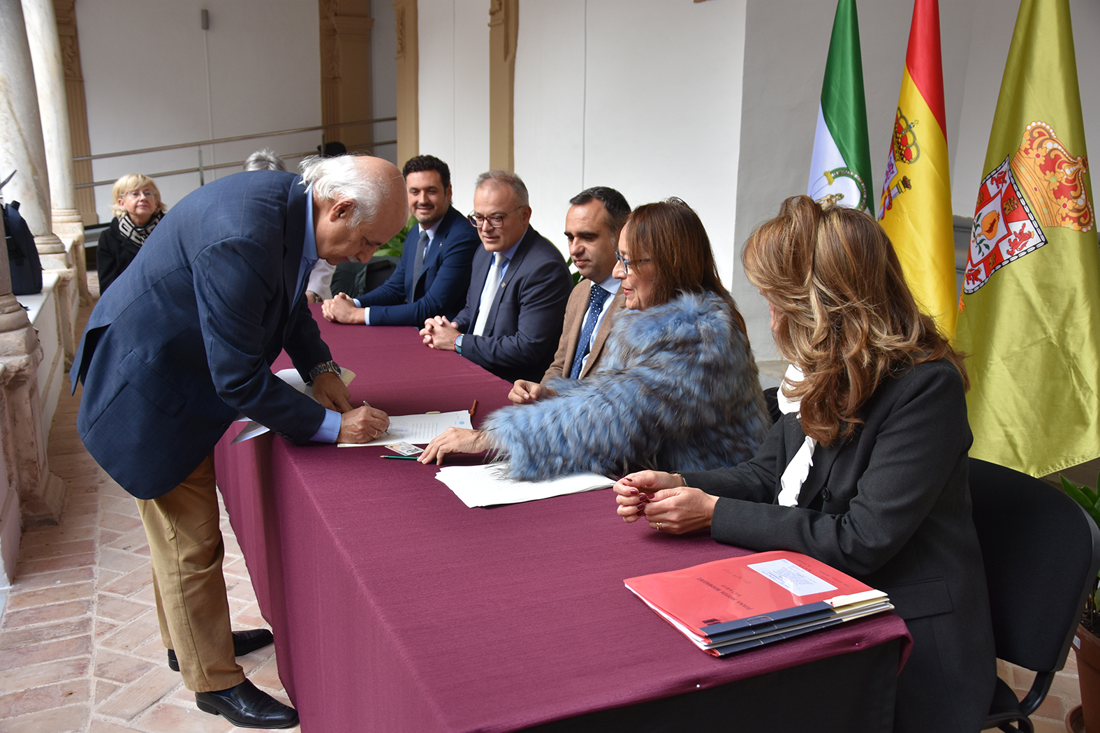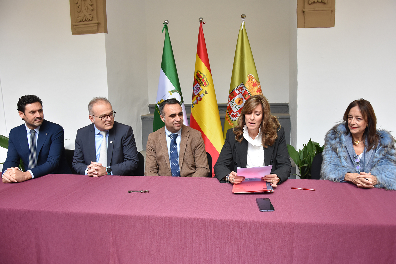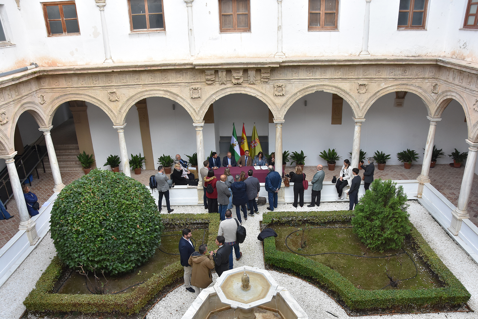Minutos después del mediodía, el presidente de la Diputación de Granada, Francis Rodríguez, ha presidido el acto de la firma de las escrituras para la adquisición del monumento. En la mesa, que se ha situado en uno de los laterales del majestuoso claustro, se han sentado a su lado el alcalde de Baza, Pedro J. Ramos, el diputado provincial de zona, Roberto González, la notaria de Baza, Juan Motos, y la representante de la familia vendedora, Teresa Dengra. Una vez leída la escritura, los vendedores han firmado los documentos y, a continuación, ha sido el turno del comprador, esto es, del presidente del organismo provincial, que ante varios medios de comunicación ha estampado su rúbrica. Posteriormente se ha desarrollado un turno de palabra que ha iniciado Teresa Dengra con un recuerdo a sus antepasados que supieron hacer de un antiguo convento un hogar familiar. La representante de los antiguos propietarios ha agradecido el trato recibido, el respaldo y el compromiso demostrados por el diputado de zona y por el alcalde de Baza. A Francis Rodríguez le ha encomendado la conservación y el esplendor de este “tesoro” que han podido disfrutar cuatro generaciones de su familia y que ahora pasa a ser de todos los ciudadanos. El presidente de la Diputación ha calificado este momento como uno de esos “días bonitos” que ofrece la gestión pública. Rodríguez ha anunciado que el edificio albergará diversos servicios provinciales en la comarca, junto con espacios culturales. Finalmente el alcalde ha recordado que el Ayuntamiento también quiso comprar este inmueble, aunque supo acoger con agrado la intención de la Diputación de hacerse con su propiedad. Ramos ha hablado de “edificio emblemático” y ha agradecido la buena disposición al acuerdo por parte de la familia propietaria. Para concluir ha extendido el agradecimiento al diputado de zona y al presidente de la Diputación y ha puesto en valor el trabajo compartido entre distintas administraciones.