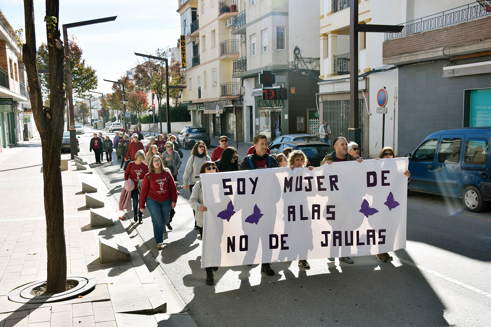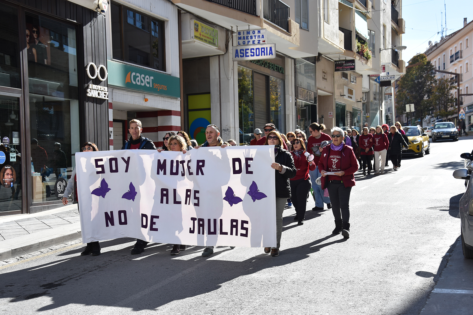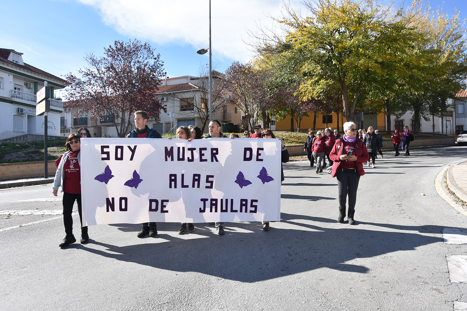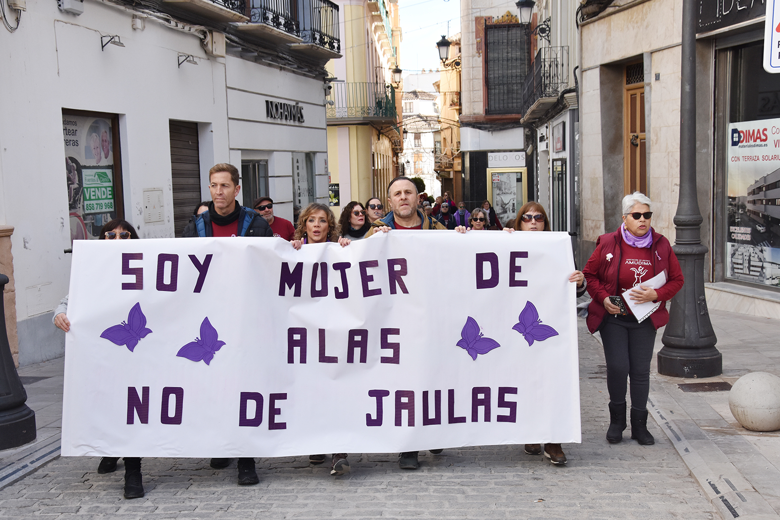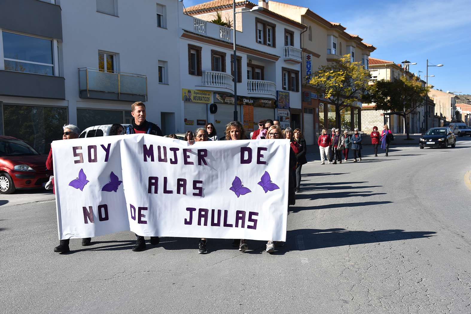 Esta mañana soleada de domingo, 23 de noviembre, se ha celebrado en Baza la XXVIII Marcha en Contra de la Violencia Hacia las Mujeres, organizada un año más por la asociación de mujeres Amudima. Acompañando al colectivo ha estado presente el concejal de Bienestar Social en funciones, Ramón López, junto con algunos otros miembros de la corporación municipal. La comitiva ha partido de la Plaza de San Marcos, donde tiene su sede la asociación, y ha realizado un recorrido por el centro urbano hasta llegar a la Plaza Mayor, donde se ha leído un texto alusivo al fin de este acto reivindicativo: erradicar la violencia que, en sus distintas formas e intensidades, sufren las mujeres. Durante todo el trayecto se ha podido escuchar el eslogan que se ha elegido en esta edición: “Soy mujer de alas, no de jaulas”.