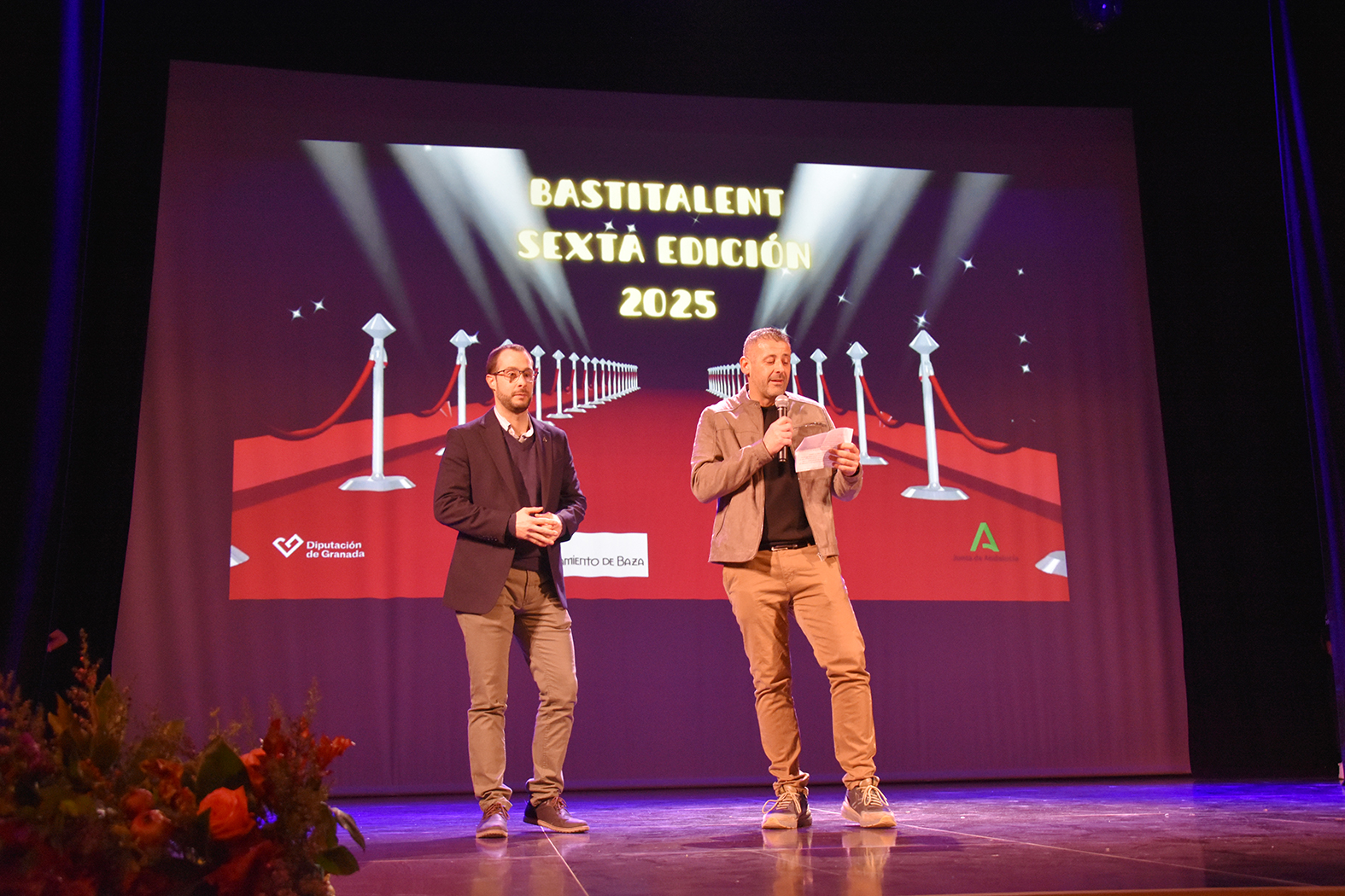 En un ambiente espléndido de fiesta se celebró el viernes 28 de noviembre la final de la sexta edición del Bastitalent, el concurso de talentos que nació como una iniciativa más del programa Imagina para jóvenes y que se ha consolidado como un evento extraordinario para conocer el artista que toda nuestra juventud lleva dentro. El teatro Dengra completó su patio de butacas entre amigos, seguidores y familiares de los participantes. Entre el público estuvieron el alcalde de Baza, Pedro J. Ramos, el concejal de Juventud, Juan Antonio Corral, y el coordinador del IAJ en Granada, José Luis de la Torre.