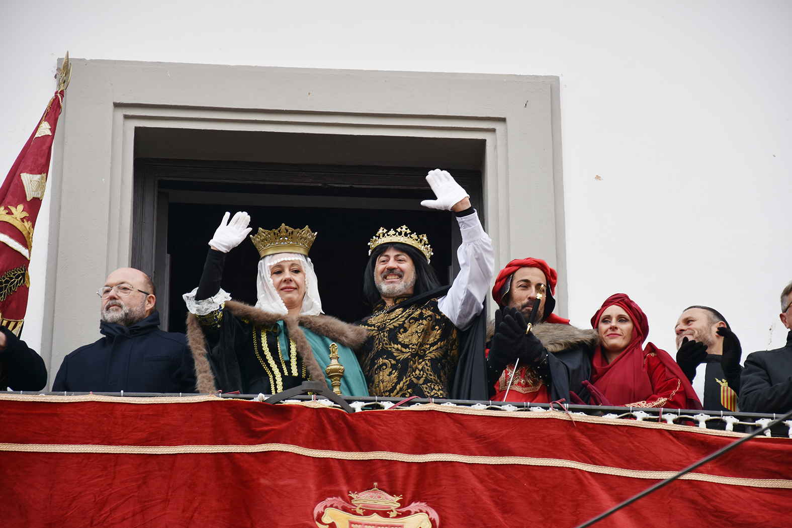 El itinerario les llevó hasta la plaza de Cid Hiaya, donde este mismo personaje, de carne y hueso, junto a su esposa Cetti Merien, les esperaba para entregarles las llaves de la ciudad rendida a sus pies. Se siguieron incorporando más escolares al desfile que hicieron más grande aún la representación. El recorrido se extendió por la Plaza de San Francisco, por el Carril, por la calle Dolores y por la calle Zapatería. El frío, sin duda, condicionó la presencia de público, aunque fueron decenas de vecinos los que salieron al encuentro de los Reyes.