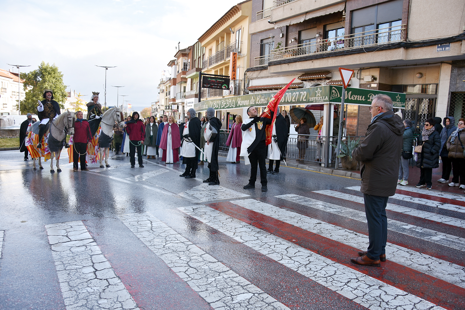 Minutos después de las 10:00h del 3 de diciembre partía desde la rotonda de avenida de Murcia con avenida del Mediterráneo, bajo la gran bandera nacional, el desfile con el que se ha representado la entrada en la ciudad de Baza de los Reyes Católicos, a caballo, acompañados por sus guardias reales, por arqueros, y por gentes de su pueblo, ataviados todos según la época y con un vaivén corporal de fiesta y celebración. El abanderado con el guión estuvo precedido en todo momento por una comitiva de escolares e incluso por bandas de música que anunciaban a la Baza actual el regreso de Isabel y Fernando. En la glorieta de Puerta de Lorca, ante la mirada sorprendida de la Dama de Baza, se unieron al desfile las autoridades municipales.