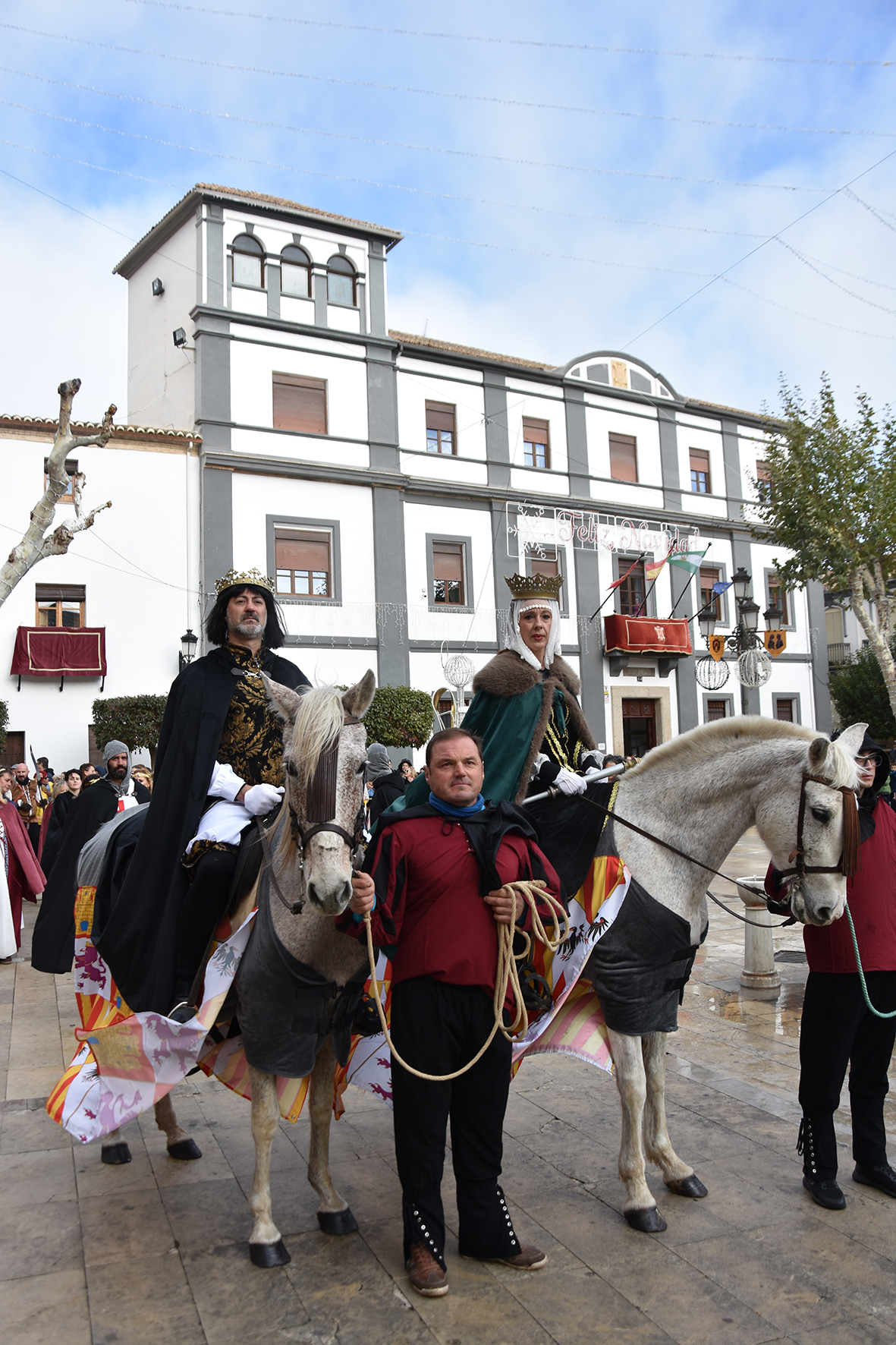 Minutos después de las 10:00h del 3 de diciembre partía desde la rotonda de avenida de Murcia con avenida del Mediterráneo, bajo la gran bandera nacional, el desfile con el que se ha representado la entrada en la ciudad de Baza de los Reyes Católicos, a caballo, acompañados por sus guardias reales, por arqueros, y por gentes de su pueblo, ataviados todos según la época y con un vaivén corporal de fiesta y celebración. El abanderado con el guión estuvo precedido en todo momento por una comitiva de escolares e incluso por bandas de música que anunciaban a la Baza actual el regreso de Isabel y Fernando. En la glorieta de Puerta de Lorca, ante la mirada sorprendida de la Dama de Baza, se unieron al desfile las autoridades municipales.