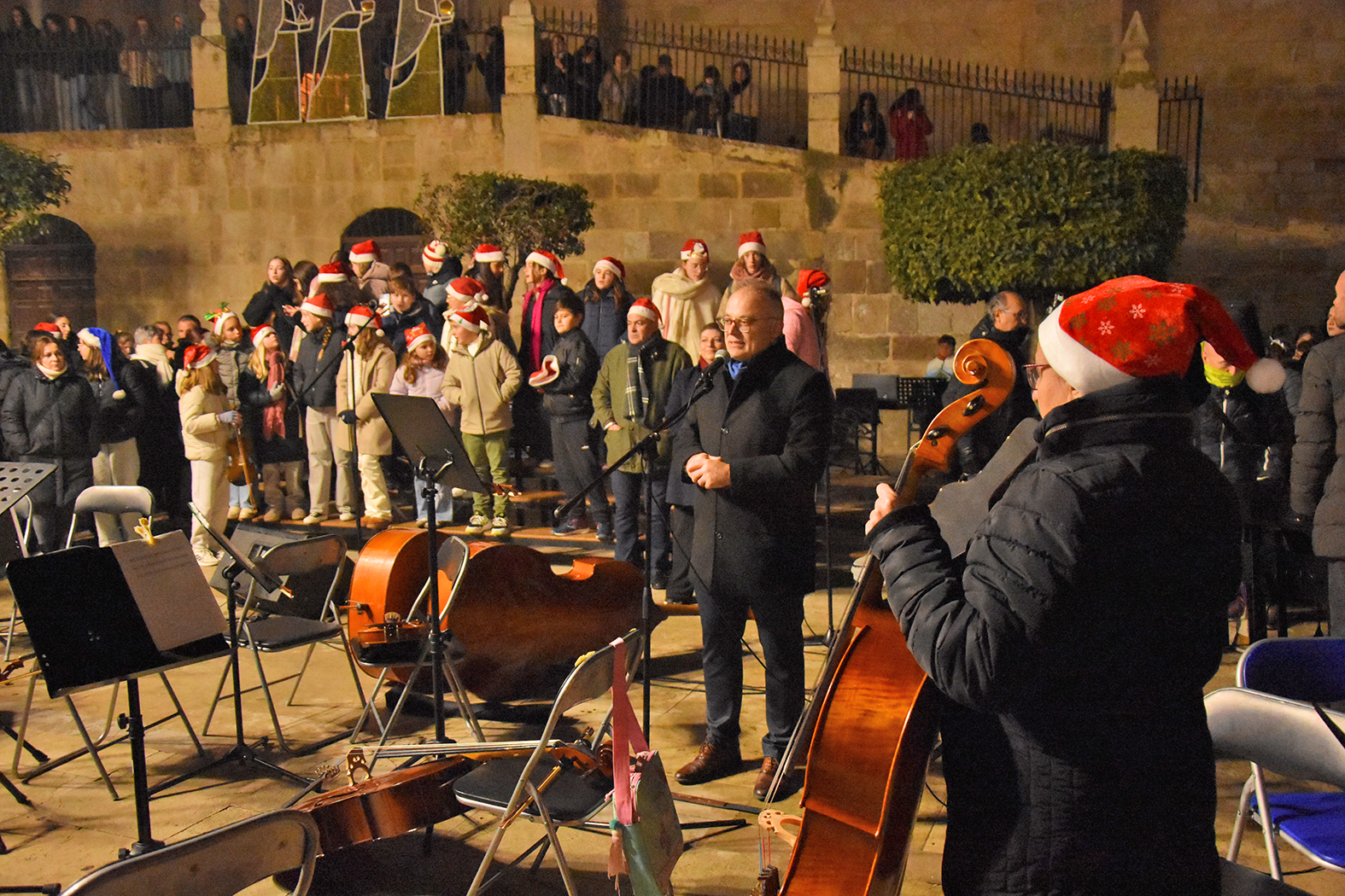 El acto contó con la participación de la orquesta y coro del Conservatorio de Música “José Salinas” y con el coro del Colegio de la Presentación, que llevaron a cabo varios villancicos. También se contó con la actuación de varios miembros de la escuela de baile de danza “La Habana”. Como decimos, las bajas temperaturas condicionaron en gran medida la respuesta de público. Un espectáculo de imagen y sonido proyectado sobre la fachada del Museo Municipal dio paso al encendido de los montajes que este año decoran la céntrica plaza, entre los que destaca de nuevo la gran estrella que parte desde la torre de la iglesia Mayor.