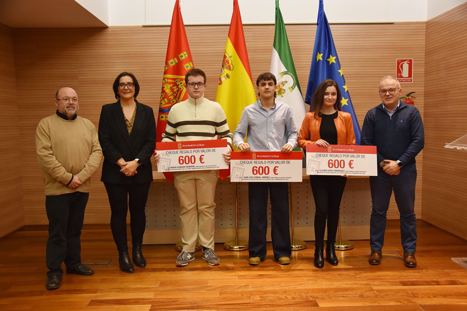 El auditorio del Museo Arqueológico Municipal acogió en la tarde del viernes 2 de enero la entrega de los premios que el Ayuntamiento de Baza concede a los mejores expedientes académicos de Bachillerato del curso pasado en cada uno de los tres institutos de la ciudad. Por parte del IES “José de Mora”, el mejor expediente, con un 9,95 de media, es el de Claudia López Rodríguez; por el IES “Alcrebite”, el mejor expediente, con un 10:00 de media, es el de Juan Luis Corral Jiménez; y por el IES “Pedro Jiménez Montoya”, el mejor expediente, con un 10:00 de media, es el de Mario Guirado Herrero. Además de la felicitación por parte de las autoridades y el reconocimiento público a su labor, el consistorio les entregó una ayuda para sus estudios de 600 euros a cada uno.