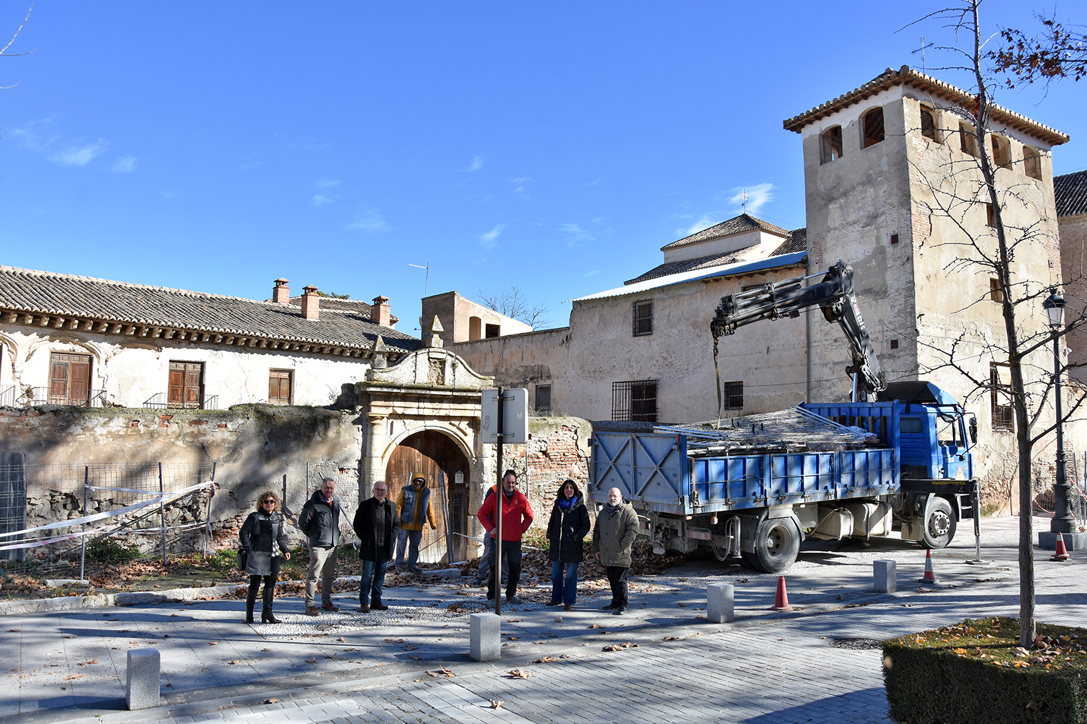 Como se había anunciado, en la mañana del miércoles 7 de enero se han puesto en marcha las obras de restauración del Palacio de los Enríquez, uno de los momentos más esperados de las últimas décadas en el patrimonio de la ciudad de Baza. El alcalde, Pedro J. Ramos, acompañado por la concejala de Urbanismo y Patrimonio, Mª Carmen López, y por el concejal de Cultura, José Gabriel López, han asistido al comienzo de esta intervención, cuyo objetivo es nada menos que la puesta en valor turístico y rehabilitación de la gran joya renacentista que Baza ofrece al mundo entero. La empresa Rehabitec Almería SL, que será la encargada de realizar la actuación, ha comenzado con el acopio de los materiales, andamiaje y demás enseres en el recinto del monumento, primer paso para seguir adelante con la actuación. “A riesgo de desgastar el adjetivo, no podemos ocultar que estamos ante un momento histórico para Baza y especialmente para su patrimonio. El inicio de la restauración del Palacio de los Enríquez es la mejor noticia, sin duda, que se podía ofrecer en este capítulo a todos los bastetanos. Vamos a seguir de cerca la evolución de estas obras para que se cumpla lo que dice el proyecto y vamos a seguir trabajando para encargar el resto de actuaciones que deben realizarse. Siendo sinceros, no sabemos cuándo estará terminado y rehabilitado del todo este monumento, pero, por fin, ya podemos decir que se ha empezado. Estamos muy contentos”, han expresado los representantes municipales a las puertas del palacio.