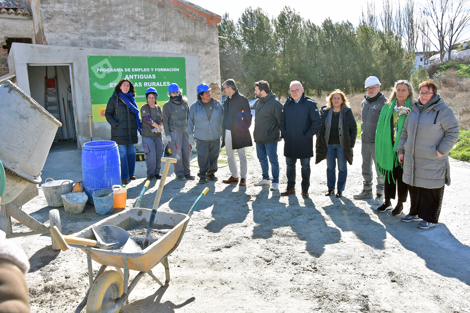 Quince personas desempleadas mayores de 45 años participan en esta iniciativa, que combina formación teórica y práctica profesional en las especialidades de albañilería y fontanería. los trabajos realizados hasta ahora han permitido ejecutar las demoliciones necesarias para crear una sala diáfana, así como la reconstrucción de la cubierta, pendiente únicamente de su impermeabilización y colocación de tejas. En el módulo de fontanería se ha completado la instalación para un baño y la fosa séptica. Entre las actuaciones previstas hasta la finalización del programa se encuentran el enfoscado, maestreado y enlucido de capa fina; la tabiquería, alicatado y ensolado del baño; la construcción de una rampa exterior; el enfoscado de fachadas y la instalación de un techo registrable.