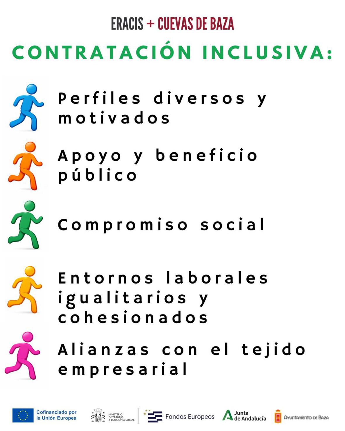 El Programa ERACIS+, cofinanciado por el Fondo Social Europeo Plus y la Consejería de Inclusión Social, Juventud, Familias e Igualdad de la Junta de Andalucía, refuerza su compromiso con la inserción sociolaboral lanzando un llamamiento a las empresas de la zona para que se sumen a la promoción de una contratación más inclusiva, que tenga en cuenta a personas en situación de vulnerabilidad o con mayores dificultades de acceso al mercado laboral.