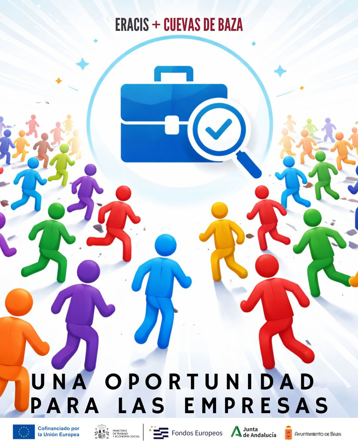 Si tienes una empresa y quieres saber más sobre este programa, puedes contactar con nosotras en el correo eraciscuevasdebaza@ayuntamientodebaza.es, por WhatsApp 638 333 830 o en el Centro de Bienestar Social.