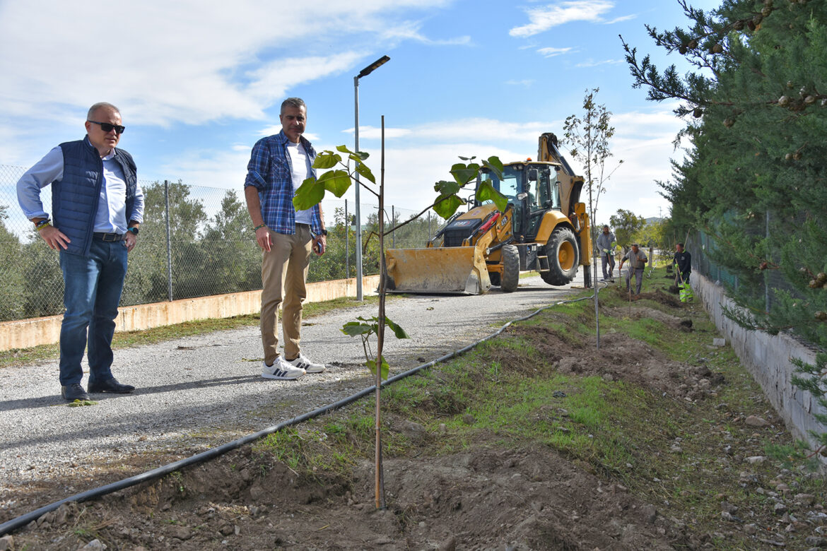 La concejalía de Medio Ambiente planta 120 árboles en un tramo de la vía verde, a los que se ha colocado también el sistema de riego para garantizar su supervivencia