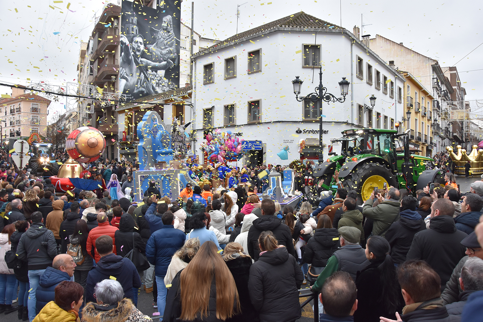 La Cabalgata de Reyes Magos de Baza 2026 ha transcurrido con normalidad, con brillantez y sin incidentes. Los voluntarios de la Agrupación de Protección Civil, personal de distintas concejalías, como la de Juventud, y los muchachos que siempre serán conocidos como los integrantes de CyD, han contribuido en primera persona al desarrollo exquisito del desfile. Enhorabuena a todos ellos. Sus majestades se han visto sorprendidos por los miles de personas que les han saludado a lo largo del recorrido, que la organización decidió acortar en la calle Enrique Enríquez para salvar la posible presencia de la lluvia. La comitiva tomó la calle Miguel Hernández para salir a una avenida José de Mora a rebosar. Este año, los “ayudantes” de los Magos han sido: de Melchor, Juan Miguel Alcón; de Gaspar, Agustín Álvarez; y de Baltasar, Ousseynou Boye.