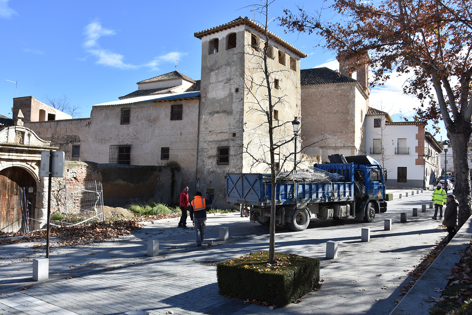 Como se había anunciado, en la mañana del miércoles 7 de enero se han puesto en marcha las obras de restauración del Palacio de los Enríquez, uno de los momentos más esperados de las últimas décadas en el patrimonio de la ciudad de Baza. El alcalde, Pedro J. Ramos, acompañado por la concejala de Urbanismo y Patrimonio, Mª Carmen López, y por el concejal de Cultura, José Gabriel López, han asistido al comienzo de esta intervención, cuyo objetivo es nada menos que la puesta en valor turístico y rehabilitación de la gran joya renacentista que Baza ofrece al mundo entero. La empresa Rehabitec Almería SL, que será la encargada de realizar la actuación, ha comenzado con el acopio de los materiales, andamiaje y demás enseres en el recinto del monumento, primer paso para seguir adelante con la actuación. “A riesgo de desgastar el adjetivo, no podemos ocultar que estamos ante un momento histórico para Baza y especialmente para su patrimonio. El inicio de la restauración del Palacio de los Enríquez es la mejor noticia, sin duda, que se podía ofrecer en este capítulo a todos los bastetanos. Vamos a seguir de cerca la evolución de estas obras para que se cumpla lo que dice el proyecto y vamos a seguir trabajando para encargar el resto de actuaciones que deben realizarse. Siendo sinceros, no sabemos cuándo estará terminado y rehabilitado del todo este monumento, pero, por fin, ya podemos decir que se ha empezado. Estamos muy contentos”, han expresado los representantes municipales a las puertas del palacio.