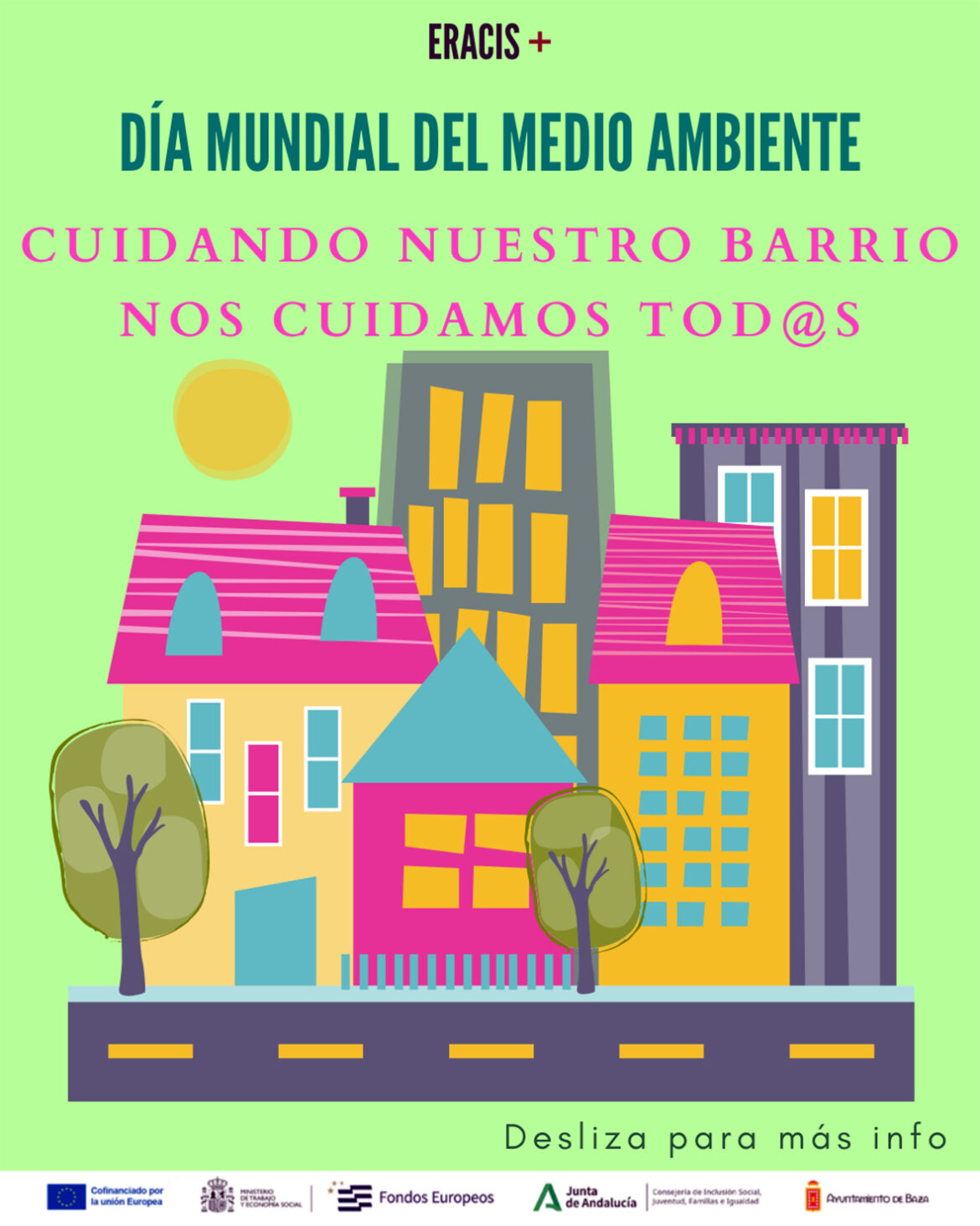 Desde el Programa ERACIS+, cofinanciado por el Fondo Social Europeo Plus y la Consejería de Inclusión Social, Juventud, Familias e Igualdad de la Junta de Andalucía, celebramos el “Día Mundial del Medio Ambiente”, una fecha clave para reflexionar, tomar conciencia y actuar en favor del planeta. Es el momento de cambiar el rumbo y trabajar juntos por un futuro más sostenible y justo.