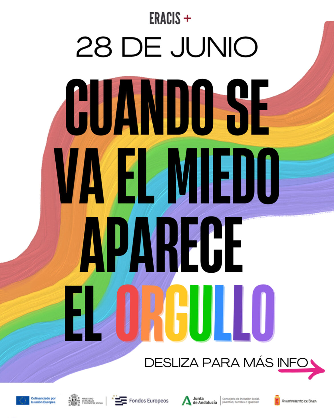 Desde el Programa ERACIS+, cofinanciado por el Fondo Social Europeo Plus y la Consejería de Inclusión Social, Juventud, Familias e Igualdad de la Junta de Andalucía, nos sumamos a la conmemoración del Día Internacional del Orgullo LGTBIQA+, que se celebra cada 28 de junio en todo el mundo.