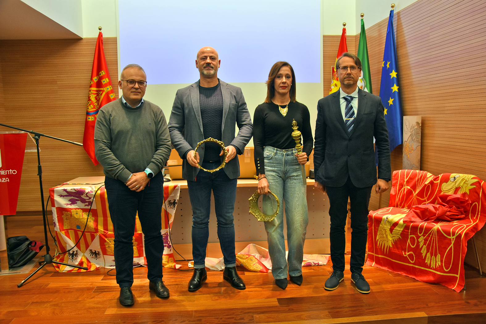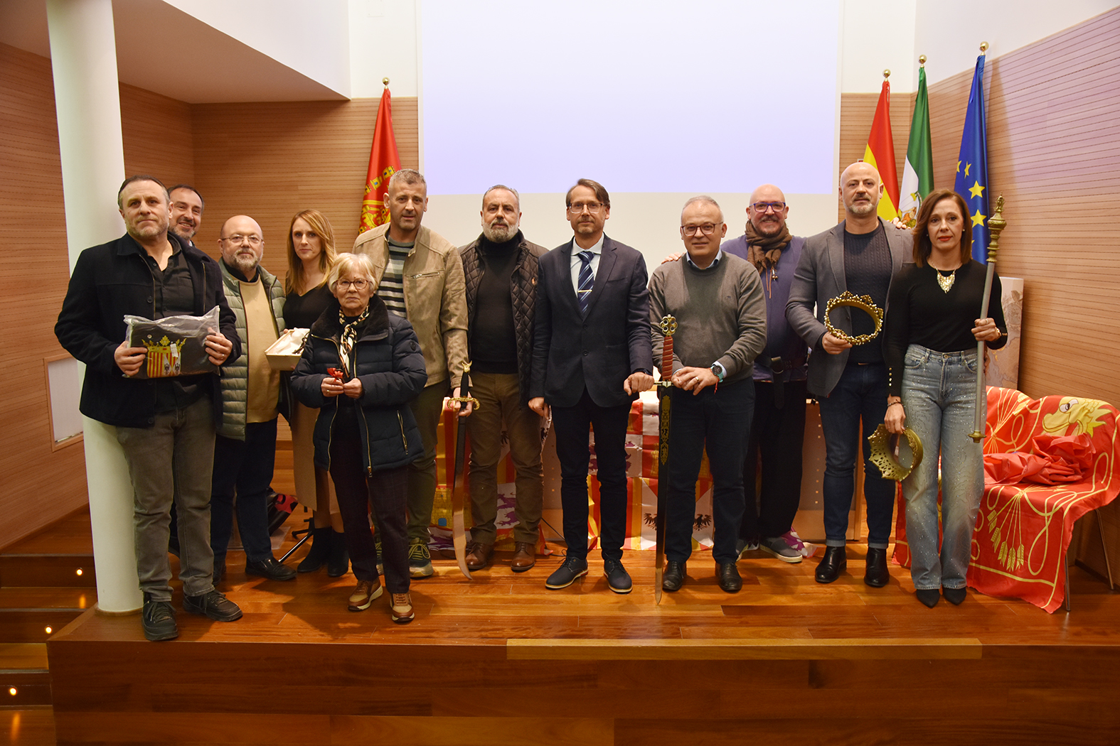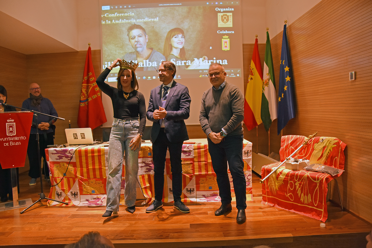 Para concluir el acto se procedió a la entrega de los enseres y ornamentos que los principales personajes de la recreación histórica van a utilizar el próximo 3 de diciembre. Recogieron sus coronas y el cetro los Reyes Católicos: Mª Carmen Martínez como Isabel y José Lorente como Fernando; las llaves de la ciudad y las armas las recogieron Mariano García (que no pudo acudir) como Cid Hiaya y Elisabeth Rodríguez como su esposa Cetti Merien; José Carlos Cruz, como capitán de la escolta de los reyes, recibió la espada; Antonio Francisco Martínez, que será el abanderado, recibió la bandera; y Tomasa Moreno (que no pudo acudir) recibió su puesto como ama de llaves de la escena. El público asistente quedó emplazado no solo para el 3 de diciembre sino para las dos actividades que aún falta por realizar: la conferencia “La Toma de Baza en la guerra de Granada”, a cargo de Miguel Amezcua, el día 28 de noviembre a las 20:00 horas; y el concierto-conferencia a cargo del experto en música medieval y andalusí Emilio Villalba, que se ha previsto para el 2 de diciembre en el mismo escenario a las 20:00 horas también. Por cierto que este acto se entregarán los premios del concurso de relatos cortos sobre la Toma de Baza que se está celebrando entre los escolares de los centros bastetanos.