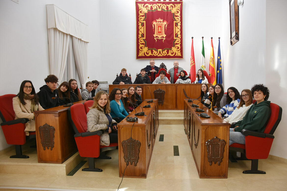 El Ayuntamiento de Baza ha recibido en días pasados la visita de alumnos y profesores del IES “Alcrebite” acompañados por sus compañeros de Italia y Francia con los que comparten un programa Erasmus, una práctica ya habitual en nuestros centros educativos en la que se suele incluir el edificio consistorial dentro de los recorridos por la ciudad. Aquí han sido recibidos por el concejal de Educación, José Gabriel López, y por el alcalde, Pedro J. Ramos, con los que han conocido algo más sobre nuestro municipio. La visita concluye siempre con una foto para el recuerdo.