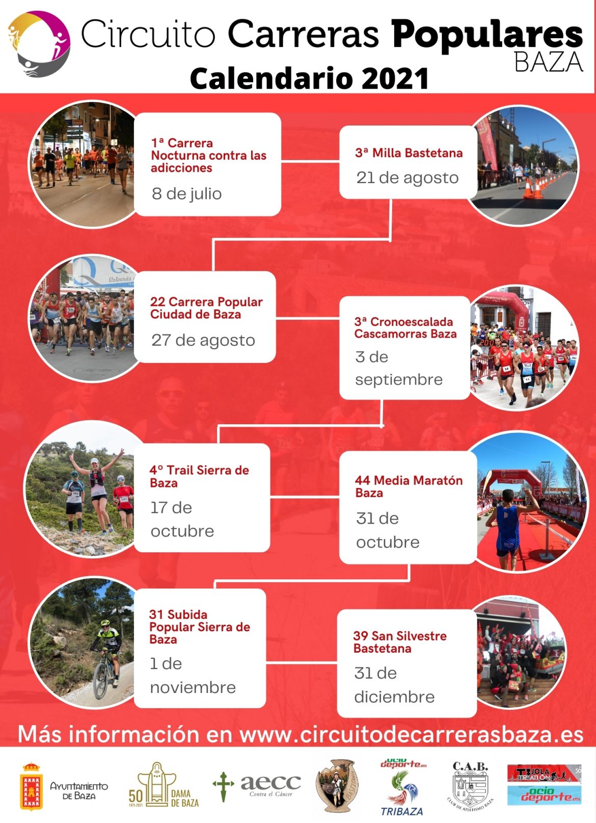 El Ayuntamiento de Baza organiza el último viernes de cada mes de agosto la que se ha convertido en la carrera clásica del verano: la Carrera Popular de Baza, que este año cumple su 22ª edición. Este año la carrera se celebrará el día 27 de agosto y tendrá como novedad un recorrido mitad urbano y mitad por la vega con un trazado de aproximadamente 10 kilómetros. Las inscripciones están abiertas con un precio de 3 euros y se pueden formalizar en la web www.circuitodecarrerasdebaza.es. La salida de menores se realizará a las 19.30h y la salida absoluta a las 20h. Podrán participar todas las categorías, desde 4 años hasta la absoluta. Se realizará cronometrado profesional por parte de Cruzando la Meta. La carrera cuenta con protocolo Covid.