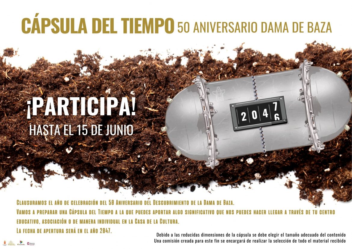 La ciudad de Baza se encuentra inmersa desde julio del año pasado en la celebración del 50 Aniversario del Descubrimiento de su Dama íbera, un evento que concentra actividades de todo tipo y que se clausura el próximo mes de julio. Entre las diferentes actividades de clausura, el Ayuntamiento de Baza ha pensado crear una cápsula del tiempo que envíe un mensaje a la ciudad del año 2047, cuando se cumplan 75 años del hallazgo de la Dama.