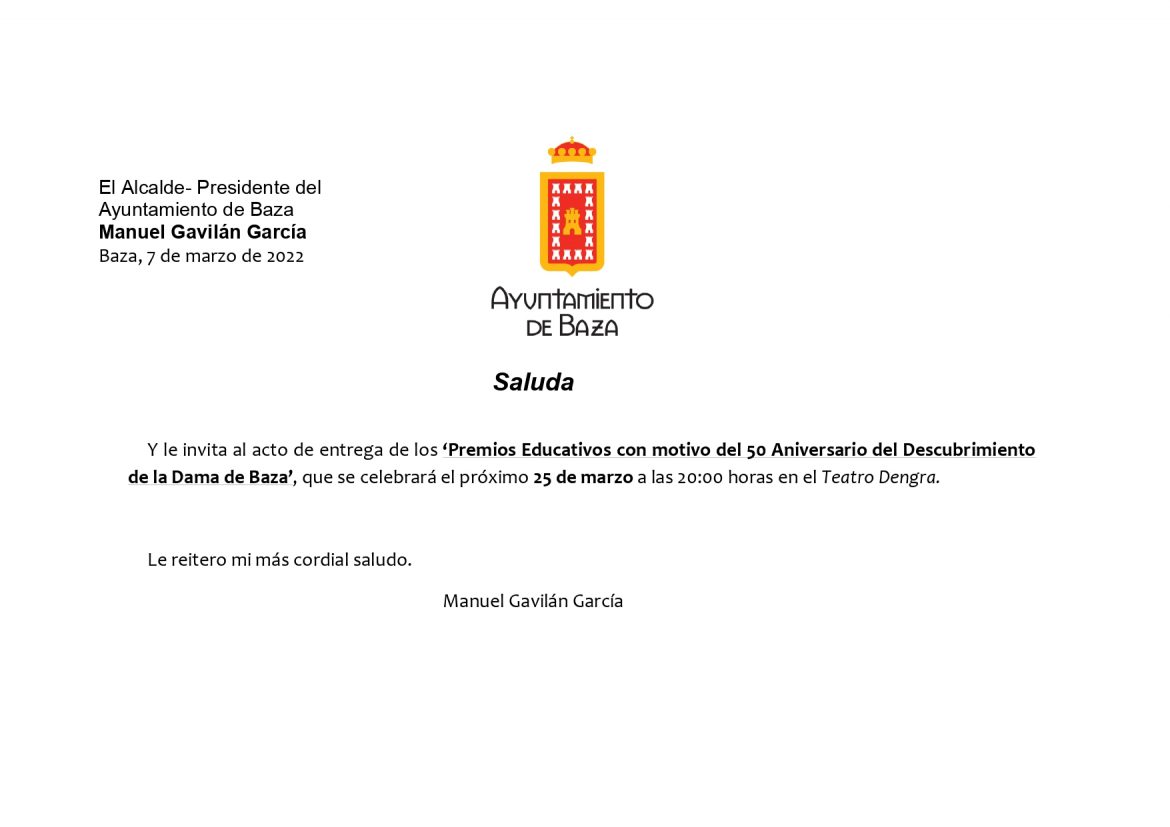 El Teatro Dengra será el próximo 25 de marzo el escenario para el acto de entrega de los Premios Educativos de dibujo, micro-vídeo, fotografía y relato corto convocados con motivo del 50 Aniversario del Descubrimiento de la Dama de Baza. Un gran evento en el que se quiere reconocer el talento tanto de los ganadores en los diferentes concursos como de todos los participantes. El acto dará comienzo a las ocho de la tarde.