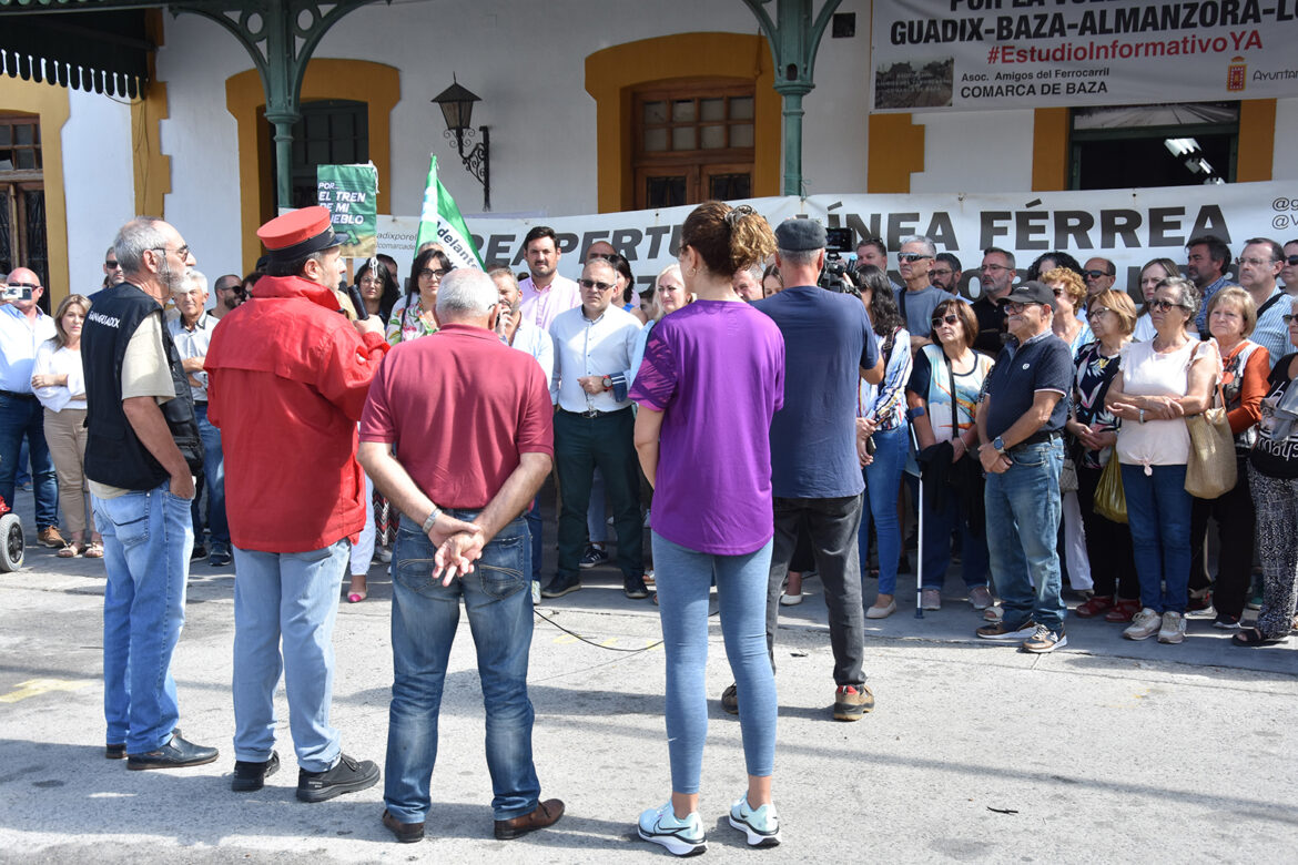 Con el alcalde, Pedro J. Ramos, a la cabeza, el equipo de gobierno casi al completo y varios miembros de la corporación municipal en representación de todos los grupos municipales, el Ayuntamiento de Baza ha acompañado y respaldado la concentración de protesta contra los resultados del Estudio Informativo para la reapertura de la línea de tren Guadix-Baza-Almanzora-Lorca que han convocado en la mañana del sábado 21 de septiembre la asociación Amigos del Ferrocarril Comarca de Baza y otros colectivos ferroviarios y la Asociación de Empresarios del Altiplano de Granada.