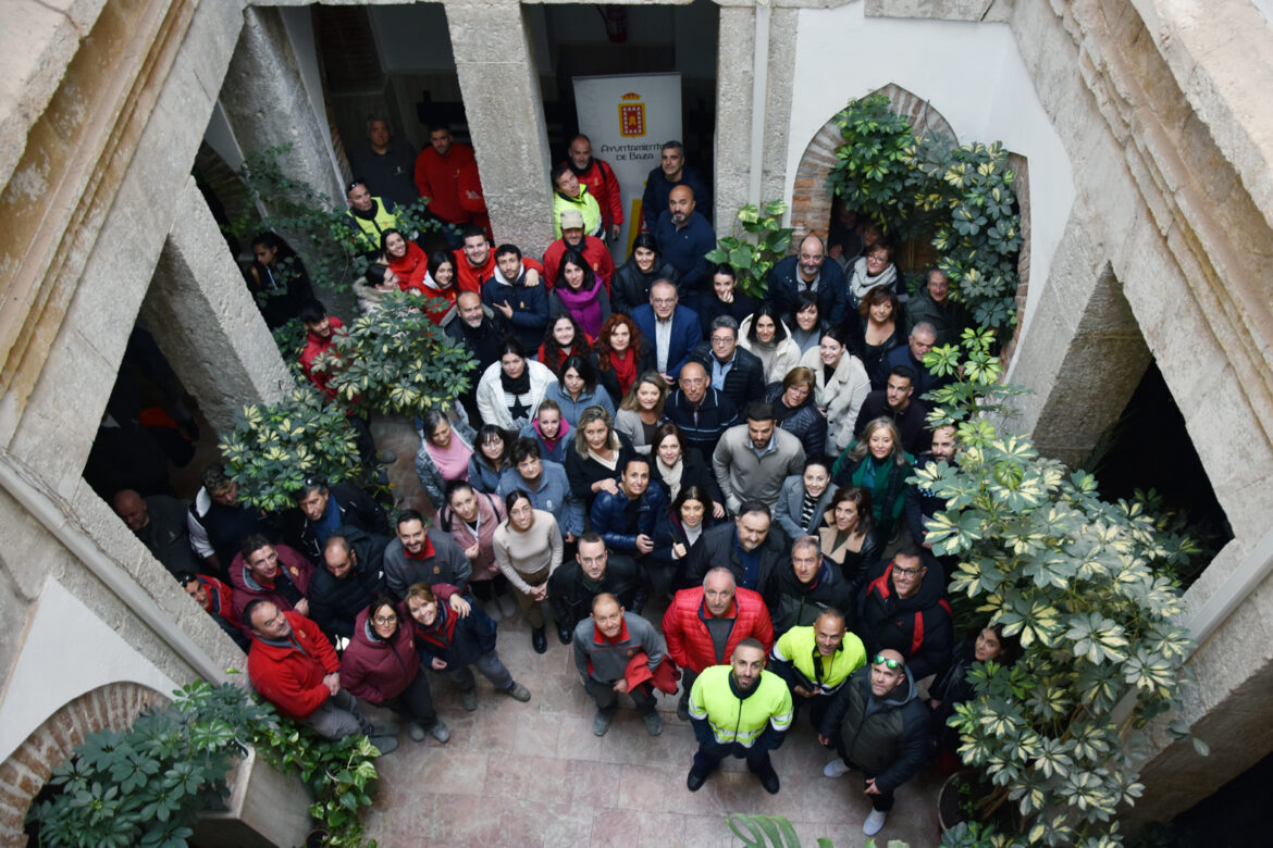 En la mañana del pasado 20 de diciembre, viernes, se celebró la entrega del aguinaldo con el que el equipo de gobierno del Ayuntamiento felicita la Navidad y el Año Nuevo a los trabajadores municipales. Al mediodía se reunieron todos los que pudieron acudir a la cita en el patio del edificio consistorial, donde el alcalde, Pedro J. Ramos, les dirigió unas breves palabras de agradecimiento por su labor y entrega y de felicitación por parte de la corporación. Tras la foto, los empleados públicos pasaron por la primera planta donde uno a uno recogieron su regalo de manos de los concejales. En una de las nuevas bolsas que se han confeccionado con motivo de la nueva imagen corporativa “Todo cabe en Baza” se incluyeron una botella de vino, una pieza de embutido y un tarro de aceitunas, productos todos elaborados en nuestra ciudad por empresas bastetanas. Los trabajadores agradecieron el gesto y devolvieron la felicitación a los responsables políticos en un agradable ambiente de celebración y hermandad.