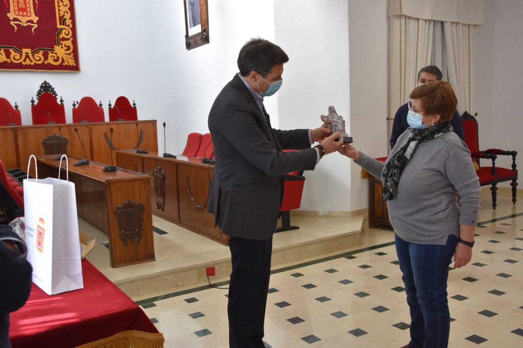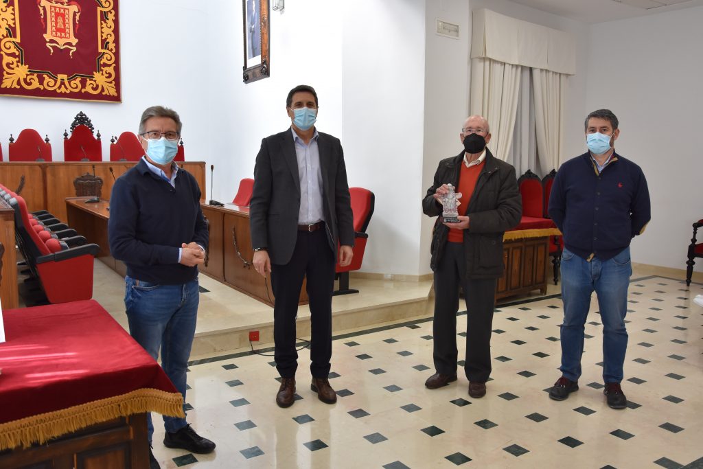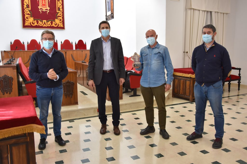 Mari Carmen Vega del anejo de Salazar o Río de Baza, Antonio Sánchez de Baúl, Manuel Rodríguez de La Jamula, Antonio Sánchez de Benacebada y Manuel Lizarte de El Baíco, mantuvieron la semana pasada un encuentro con el regidor que les entregó una réplica de la Dama de Baza realizada por el artista Ramón Salarich.