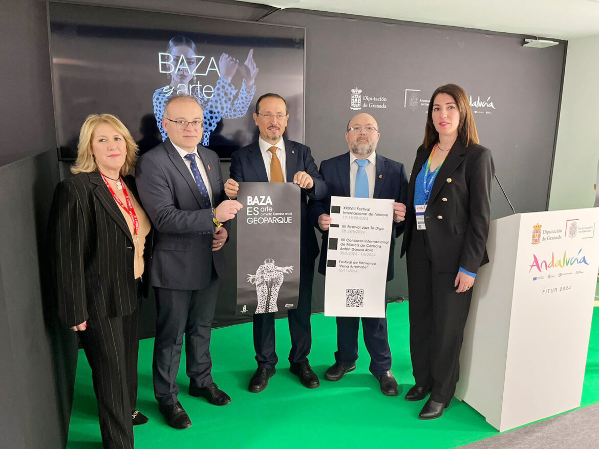 La ciudad de Baza ha aprovechado la recién terminada edición de la Feria Internacional de Turismo para convertir su rica y extensa programación musical y folklórica en un suculento paquete cultural que se añade ya por méritos propios al resto de reclamos turísticos de que dispone nuestro municipio. Y darlo a conocer a todo el mundo ha sido el objetivo de la presencia de varios miembros del equipo de gobierno del Ayuntamiento de Baza en esa prestigiosa feria desarrollada del 24 al 28 de enero en Madrid. Hasta allí se desplazaron el alcalde, Pedro J. Ramos, el concejal de Turismo, José Gabriel López, y las concejalas de Gobernación y Urbanismo, Mª Carmen Sánchez y Mª Carmen López, respectivamente. “Además de para promocionar los grandes referentes turísticos de Baza y nuestras excelencias naturales, patrimoniales y festivas, que ya son suficientemente conocidas, este año hemos ido a Fitur a trabajar, a trabajar en serio, y para eso hemos querido llevar una oferta concreta, con fechas determinadas, una propuesta que pueda venderse como un producto de cara a las empresas del sector” ha indicado el concejal de Turismo, José Gabriel López, que ha venido muy contento y satisfecho de cómo ha ido su estancia en el recinto ferial madrileño.