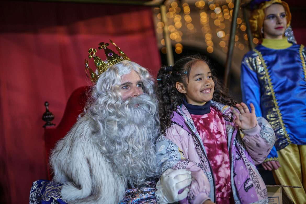 Como es habitual, los Reyes Magos han dirigido unas palabras a todos los asistentes deseándoles lo mejor para este nuevo año y animando a los más pequeños a irse a dormir pronto para facilitar su trabajo en esta noche mágica en la que reparten infinidad de regalos. Luego han ido recibiendo a los niños y niñas en la Plaza Mayor, acompañados de sorpresas y de chuches.