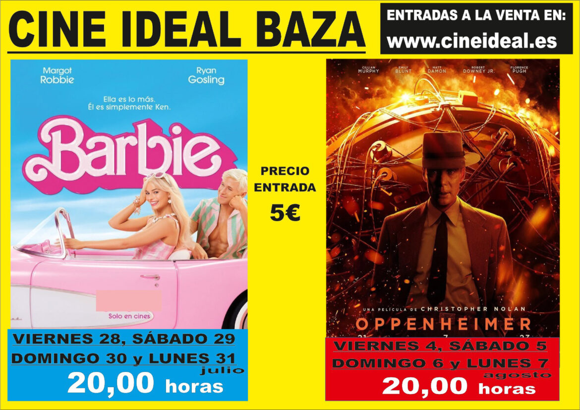 CINE IDEAL BAZA proyecta este fin de semana y el siguiente las dos de las películas más esperadas este año, BARBIE, de Greta Gerwig, y OPPENHEIMER, de Christopher Nolan.