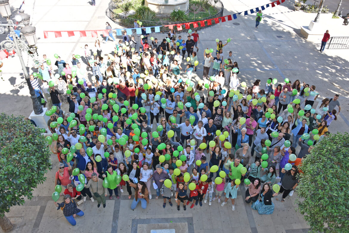 La Plaza Mayor, a las puertas del noble edificio del Museo Municipal, acogió el martes 10 de octubre la conmemoración del Día Mundial de la Salud Mental, una jornada para la reflexión, para la reivindicación y para la sensibilización con un colectivo especialmente vulnerable que requiere más atención de todos. En el acto, al que acudieron varios grupos de estudiantes de los centros educativos de la ciudad, se dispusieron varios stands informativos de las entidades que trabajan en este sector asistencial. Entre ellos vimos a Afemagra, a Faisem y a Ad-Hoc. No obstante, lo que más llamó la atención fue el color verde, especialmente en los globos y los regalos que se ofrecieron a los reunidos. Con todos ellos estuvieron un grupo de concejales del equipo de gobierno del Ayuntamiento, encabezados por la concejala de Bienestar Social, Priscila Martínez, que el día anterior inauguraba una exposición en la Biblioteca Pública con motivo también de esta celebración. Para terminar el evento, se leyó un manifiesto en el que se refleja el mensaje de este 10 de octubre. Con él cerramos esta crónica…