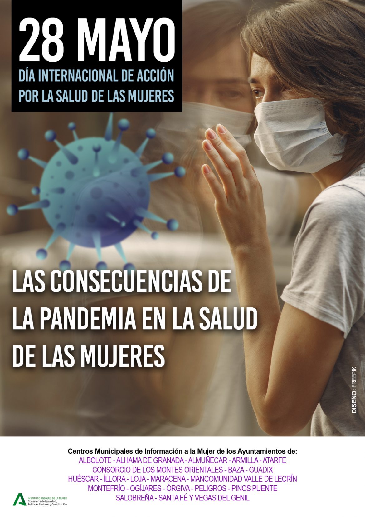 El Ayuntamiento de Baza se ha sumado a través de su Centro Municipal de Información a la Mujer (CMIM) a la campaña provincial puesta en marcha por todos los Centros de la provincia con motivo del Día Internacional de Acción por la Salud de las Mujeres que se conmemora anualmente el 28 de mayo. Desde el pasado martes día 25 y durante tres días se han publicado a través de las redes sociales municipales tres preguntas (una por día) ideadas para hacer reflexionar a la sociedad respecto a este tema. Y hoy viernes 28 de mayo, Día Internacional de Acción por la Salud de las Mujeres, se publica el cartel conmemorativo de este día destacando las consecuencias de la pandemia en la salud de las mujeres.