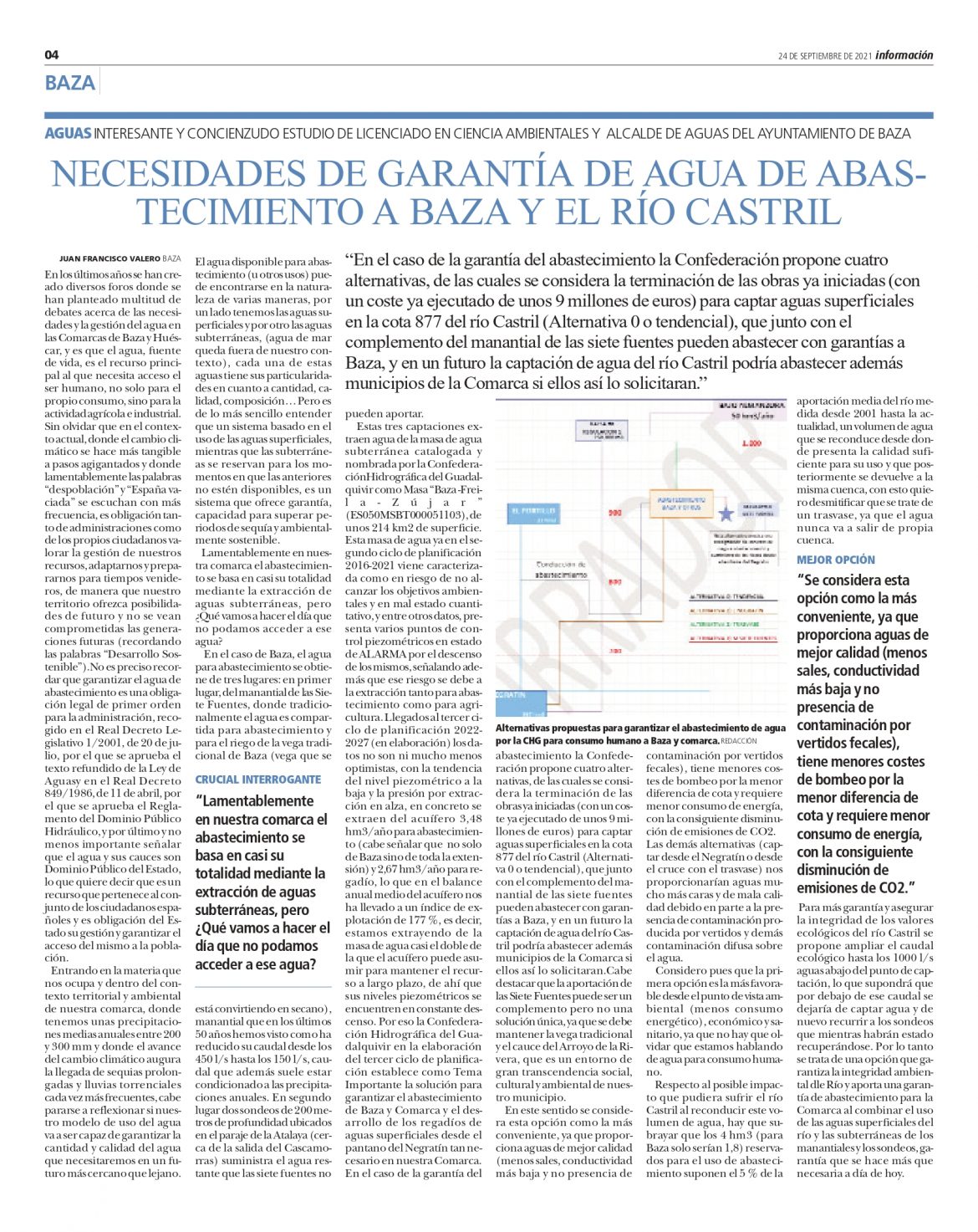 Reflexión del alcalde de Aguas, concejal de Agricultura y licenciado en Ciencias Ambientales Juan Francisco Valero sobre la necesidad de garantía de abastecimiento del agua a Baza.