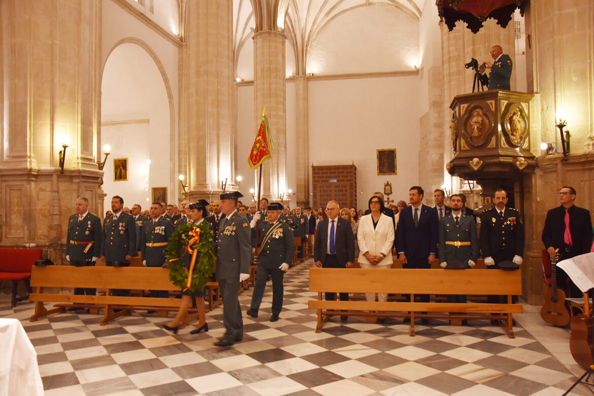 Tras la concurrida misa celebrada en la iglesia Mayor, en la que el Ayuntamiento ha realizado una ofrenda floral a la patrona de la Guardia Civil, la comitiva municipal se ha trasladado hasta el cuartel de la avenida José de Mora, donde el alcalde ha presidido, junto al teniente de la comandancia bastetana, la delegada territorial de Desarrollo Educativo, y los máximos responsables de la Comisaría de Policía Nacional, Policía Local y cuerpo de Bomberos, el tradicional acto castrense del día del Pilar, en el que varios guardias civiles han sido reconocidos con distintos emblemas por el desempeño de su trabajo.