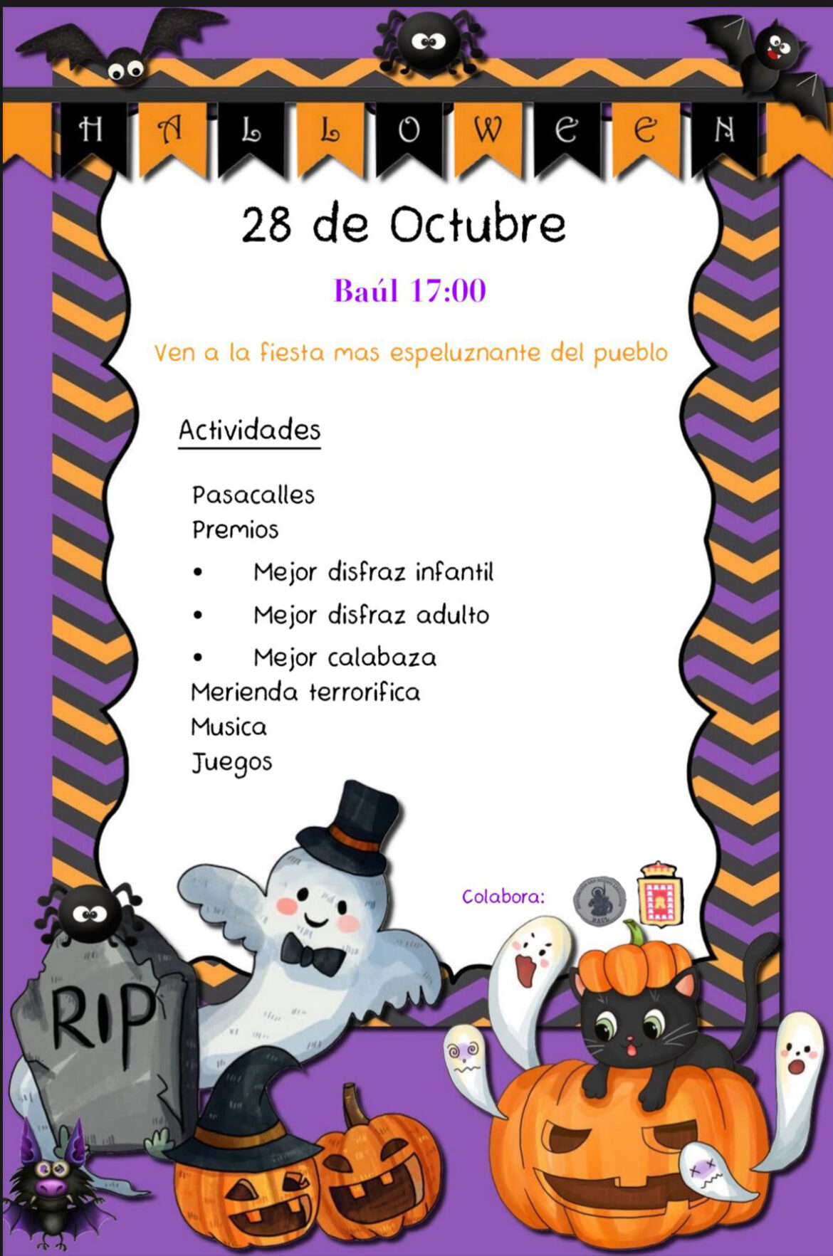 A partir de las cinco de la tarde, este sábado 28 de octubre, el anejo de Baúl va a celebrar su fiesta más terrorífica y espeluznante. Con unos días de antelación llega Halloween cargado de actividades para todas las edades. Habrá pasacalles, concursos con premios al mejor disfraz infantil y masculino y a la mejor calabaza, merienda terrorífica, música y juegos. La diversión está asegurada. No faltes y, por supuesto, ven disfrazado.