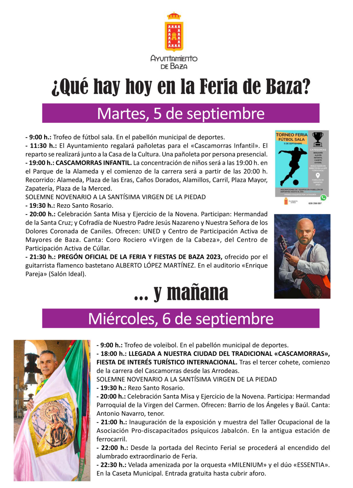 Para que no se te pase nada… Y si quieres consultar todo el Programa Oficial: PROGRAMA OFICIAL FERIA Y FIESTAS DE BAZA 2023