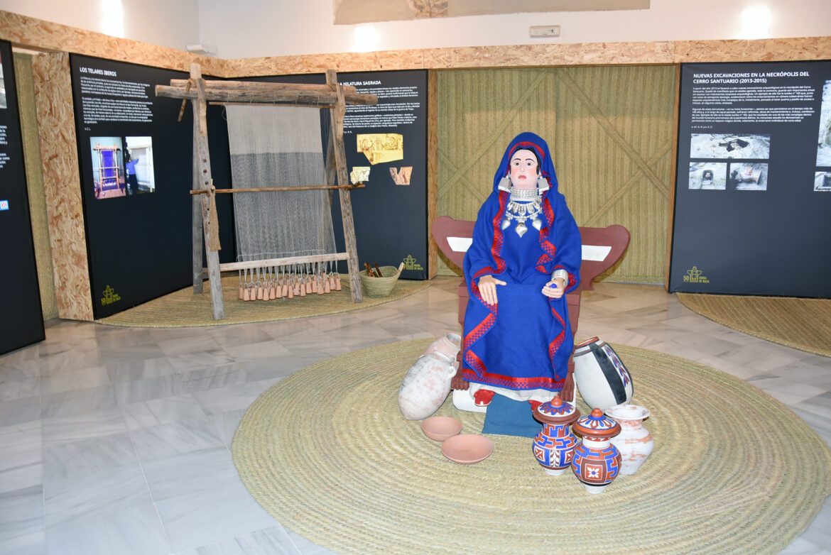 Junto a esta réplica, que es el punto central de la exposición, se podrán contemplar otras dos. Por un lado se han reproducido las piezas que conforman el ajuar que la acompañaba en la tumba 155 del Cerro Santuario: vasijas, ánforas, urnas, tapaderas, que podremos ver por primera vez con sus dibujos y en sus colores originales, como fueron creadas. Y por otro lado, podremos ver y tocar la reproducción de un telar íbero con el que, incluso, se podría tejer. Es tal su precisión, sus detalles y su veracidad histórica que, a diferencia de los que existen en otros lugares del mundo, en este se podría empezar a trabajar en cualquier momento, por ejemplo, en la confección de las telas que porta la Dama de Baza.