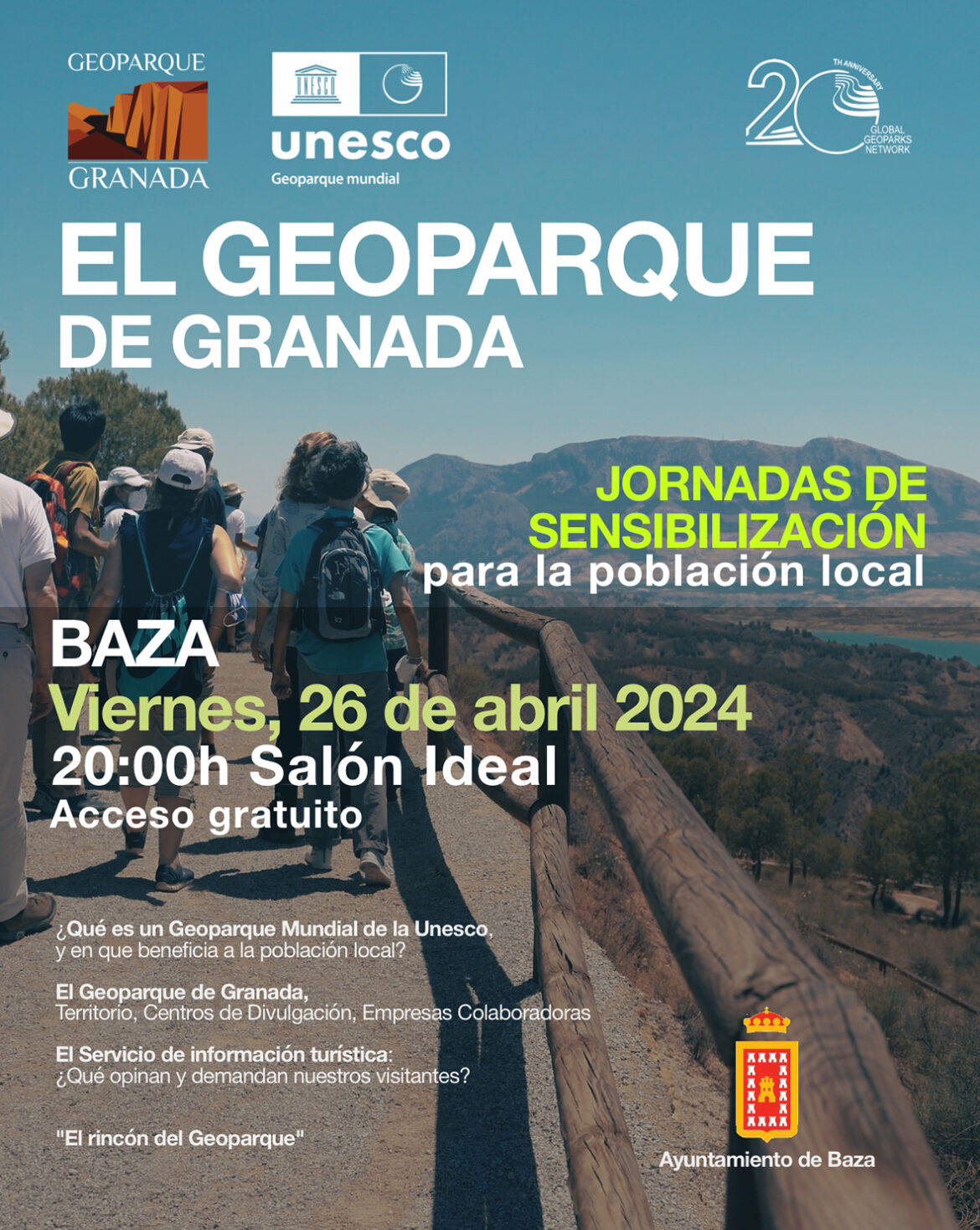 ¿Quieren saber qué es un Geoparque Mundial de la UNESCO y en qué beneficia a la población local? La respuesta a esta y a otras muchas preguntas sobre el Geoparque de Granada se puede conocer de forma muy fácil asistiendo a la jornada de sensibilización que, organizada por el Servicio de Información Turística del Geoparque, se va a celebrar este viernes, 26 de abril, desde las 20:00 horas en el salón Ideal de Baza. El acceso es gratuito hasta cubrir el aforo del recinto. Se hablará sobre el territorio que acoge el Geoparque de Granada, sobre los centros de divulgación que existen en él, de las empresas colaboradoras e incluso sabremos qué opinan y qué demandan las personas que nos visitan.