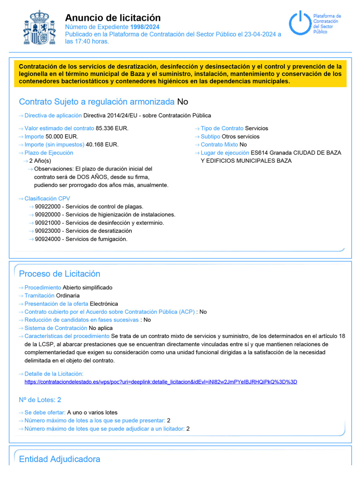 Home Etiquetas Noticia etiquetada en "licitación servicios desinfección"