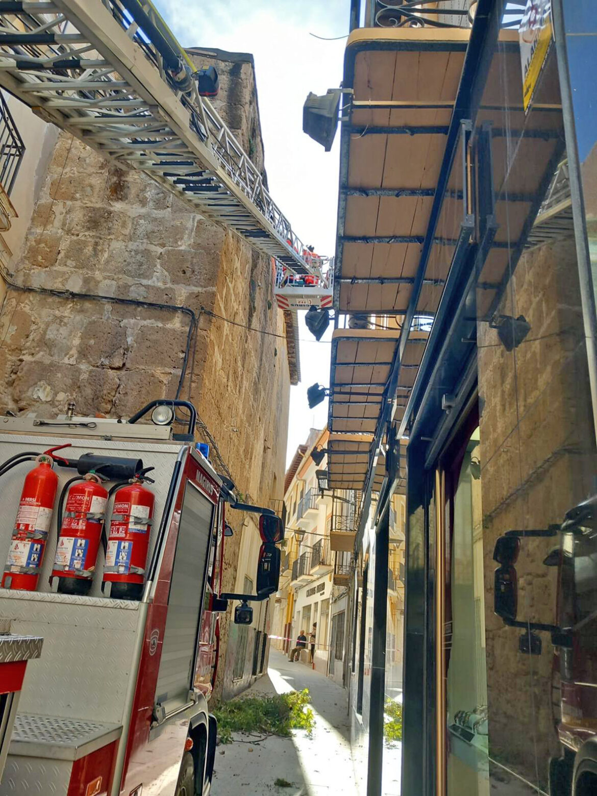 Tras analizar la situación, la concejalía de Patrimonio procedió el pasado 9 de abril a realizar los trabajos sobre la misma torre, lo que obligó a contar con la colaboración del servicio de Bomberos, que gracias a su camión escala pudieron llegar a la parte más alta de la cubierta para moverse por ella. Una vez allí se eliminó la vegetación, se retiraron las partes sueltas y se aseguraron otros elementos como el mismo cobertor butílico que protege la cubierta impidiendo que el agua de lluvia se filtre.