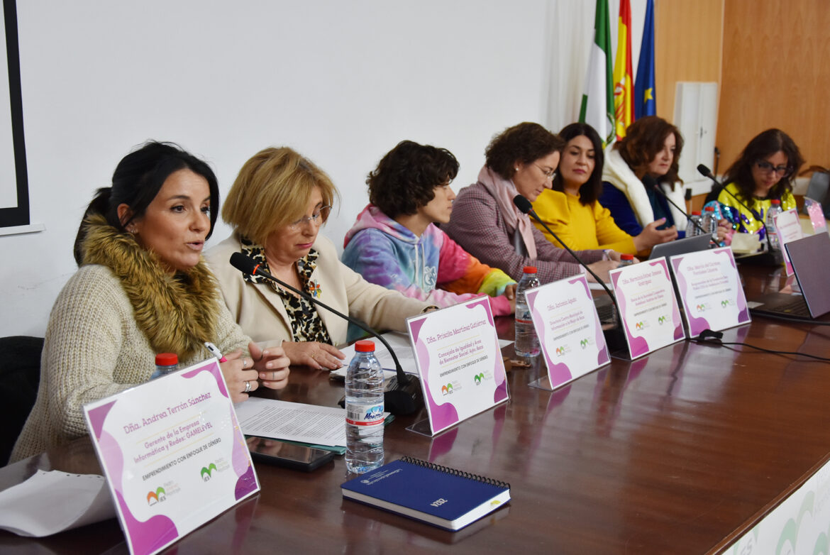Junto a Priscila Martínez y Antonia Agudo participaron en la mesa Mª Carmen Fornieles, responsable de Andalucía oriental de la Fundación San Pablo CEU; Mariló Corral, presidenta de la cooperativa “La Esperanza” de Cuevas del Campo; Andrea Terrón, gerente de la empresa “Gamelevel”; Herminia Esther Jiménez, socia de la cooperativa “Azafrán del oasis” y Cristina Puertas, gerente de la peluquería “Cristy”.