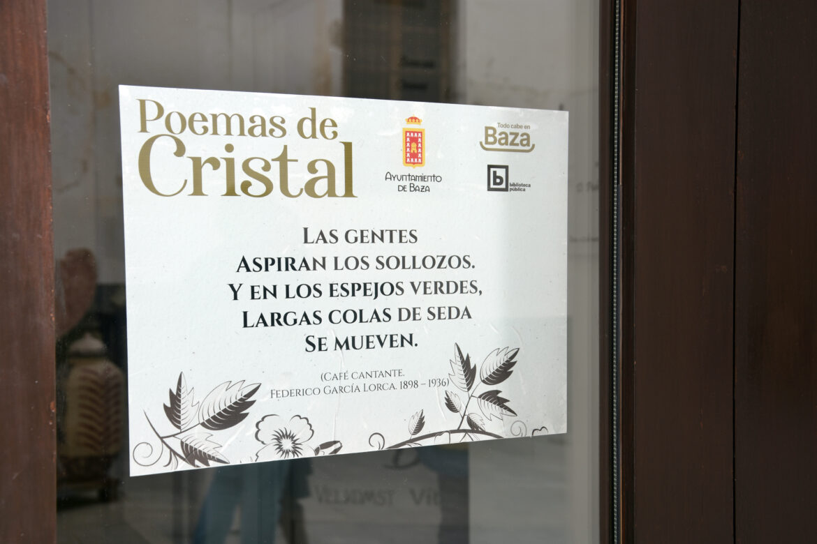 Este viernes 21 de marzo, Día Internacional de la Poesía, la concejalía de Cultura del Ayuntamiento de Baza quiere rendir un original homenaje a este género literario sacándolo a la calle y exponiéndolo a la ciudadanía. Para ello contará con la colaboración de la Biblioteca Municipal, del Conservatorio Profesional de Música y de la Asociación de Comercio de la localidad. La actividad se ha titulado “Poemas de cristal” y está abierta a todos los públicos, a los que les gusta la poesía y a los que no.