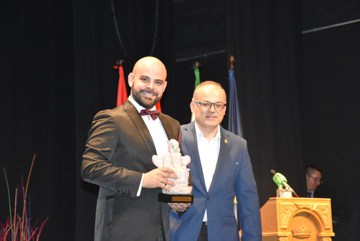 Minutos después de que concluyera la carrera infantil, el centro de atención se trasladó al auditorio Enrique Pareja, donde Alberto López se preparaba para pregonar la Feria y Fiestas. Antes de hablar ante el atril, el prestigioso guitarrista flamenco bastetano hizo lo que mejor sabe hacer, tocar. Tres pinceladas de su buen arte nos regaló este paisano orgulloso de su bastetanismo. Ya en el uso de la palabra, Alberto nos descubrió por qué quiere tanto a esta ciudad, a sus gentes, a sus costumbres, a su gastronomía, a su familia. Este artista que está triunfando en el mundo entero reconoció que donde más nervioso se pone es en Baza, donde más le duele el corazón y donde está orgulloso de ser profeta, por lo menos, del cariño de los suyos. Su pregón fue una exaltación de Baza, de sus rincones, de sus habitantes y de sus posibilidades, con un cierto tirón de orejas para que la tengamos más en cuenta. El alcalde le entregaba una réplica de la Dama de Baza que seguro guardará junto a Victoria en su casa entre los tesoros más preciados.