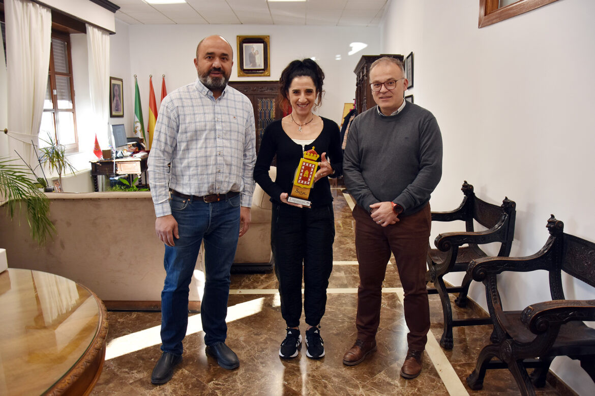 El Ayuntamiento de Baza ha querido reconocer la exitosa trayectoria deportiva de su paisana Piedad Quesada Corral, que entre otros muchos méritos ha sido la ganadora en las dos últimas ediciones (2023 y 2024) de la Ultra Sierra Nevada, una de las pruebas más duras de cuantas se celebran en nuestro país con cien kilómetros de recorrido y más de 5.500 metros de desnivel positivo. En un sencillo acto celebrado en la alcaldía, el mismo alcalde, Pedro J. Ramos, y el concejal de Deportes, José Antonio Valdivieso, han entregado a la atleta una réplica del escudo de la ciudad realizada por el escultor Ramón Salarich. La integrante más sobresaliente del Club Bastitania de nuestra ciudad se ha mostrado muy contenta y agradecida con este galardón, que además le ha satisfecho bastante por su estética.