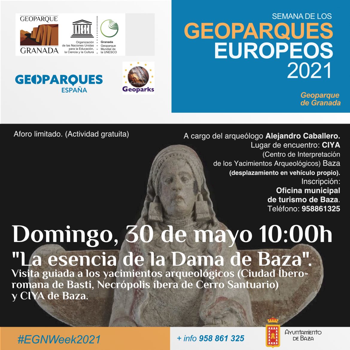 El Ayuntamiento de Baza se suma a la celebración de la ‘Semana de los Geoparques Europeos 2021’ con una atractiva propuesta programada este domingo 30 de mayo a las diez de la mañana y que gira en torno a una de sus señas de identidad: la visita ‘La esencia de la Dama de Baza’ guiada por el arqueólogo Alejandro Caballero.
